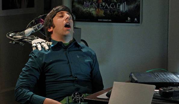 Estava com saudade daquela risada ofegante e hilária – parece que está tendo asma passiva! Sabemos que para além do braço robótico, Sheldon pode ser considerado em parte um robô puramente lógico e com um enorme sentido crítico perfeccionista (reservando ainda a sua parte humana em certas particularidades como as suas manias.)