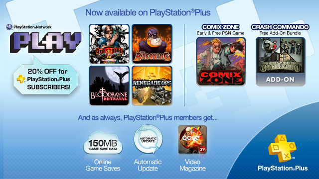 Membros Plus ainda recebem 20% de desconto na pré-venda de títulos que iram sair nas próximas semanas como Street Fighter 3: Online Edition, The Baconing, BloodRayne: Betrayal e Renegade Ops.
