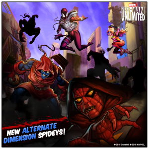 Há uma trama por detrás dessa desculpa para ser possível controlar tantos e tantos Aranhas, pontos para a Gameloft por se preocupar com isso num simples joguinho de celular. O caso é que existe uma ameaça e o Homem-Aranha e a S.H.I.E.L.D. criam uma máquina para um portal que pode trazer qualquer Aranha, de qualquer tempo e realidade, para o universo do Aranha tradicional. Infinitas possibilidades de skins num game Unlimited (Sem limites). E o bacana é que todos os Aranhas que podem ser utilizados no game de fato existiram em algum momento nos quadrinhos Marvel. Nenhum é inventado da cabeça dos desenvolvedores. Todos de fato apareceram, mesmo que em aparições minúsculas, no grande Universo Aranha.