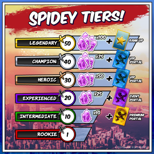 Cartas verdes (Comuns) podem elevar os Aranhas até level 50, Azuis (Raras) até 70, Roxas (Incríveis) até 90, Amareladas (Lendárias) até 100 e mais recentemente foram criadas as cartas Pratas (Titã) que podem ir até o level 120. Leveis definem a quantidade do multiplicador de pontos por partida. Então uma carta azul, por exemplo, se vai até 50, tem seu multiplicador no máximo em x9, enquanto uma lendária no nível 100 pode ter o multiplicador até x13.