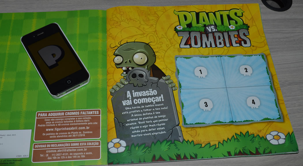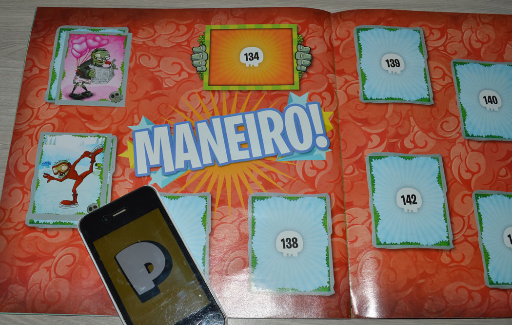 Aqui admito que talvez ele não seja voltado para um pessoal mais velho. Alias álbum de figurinhas em tese não é para adultos, mas você sabe, né? Todos temos aquela criancinha dentro da gente. O caso é que achei curioso ver a empolgação (espia só) na qual o pequeno Thales – de 3 aninhos – ficou com o álbum do game que ele adora jogar no iPad e no Xbox One. Ah, não se preocupe, eu não deixo ele jogar Garden Warfare online, então se você passa raiva com crianças pequenas nestes games que pedem um público um pouco maior, saiba que não é o Thales jogando mal online! Ele joga offline mesmo, se satisfazendo com os zumbis bots do modo Operação Jardim.