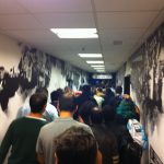 Novamente fiquei próximo do Pedro Falcão da Max Reebo e do Pablo Miyazawa da IGN Brasil na fila para o elevador, mas não tive coragem de cumprimentá-los, pois havia acabado de chegar ao evento, vindo da estação do metrô, subindo apressadamente a colina que dá para o estádio e que, para um gordinho como eu, mais pareceu uma montanha. Estava um pouco ofegante, pernas doloridas e por conta do frio, eu estava bem agasalhado, ou seja, estava suando um pouco, com os motores superaquecidos, precisando de alguns minutos para voltar ao meu estado normal. Hahaha.