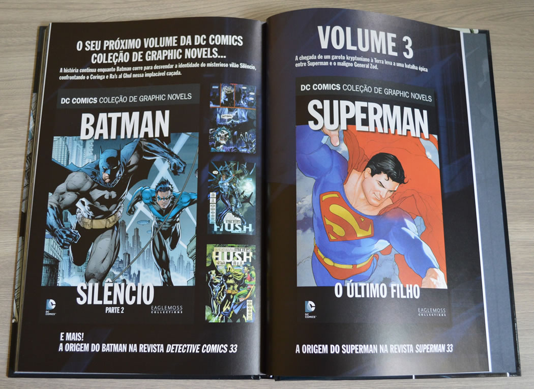 Para encerrar, a primeira edição, vem com um folheto, apresentando a coleção. Nele já se confirma alguns dos arcos que estarão presentes na coleção. Tais como: Mulher-Maravilha – Arcos Petrificada, O Círculo e Deuses e Mortais, Arqueiro Verde – Arcos Ano Um, Os Caçadores e O Espírito da Flecha, Superman – Arcos A Morte do Superman, O Legado das Estrelas e O Homem de Aço, Liga da Justiça – Arcos Terra Dois, Justiça e Ano Um, Batman – Arcos Morte em Família e Robin Ano Um, Flash – Arcos Nascido para Correr, Guerra de Gangues, O Retorno de Barry Allen e Lanterna Verde – Arcos Crepúsculo Esmeralda, Lanterna Verde / Arqueiro Verde e DC A Nova Fronteira. Claro que serão apenas estes arcos, há muito mais, porém é uma boa prévia!
