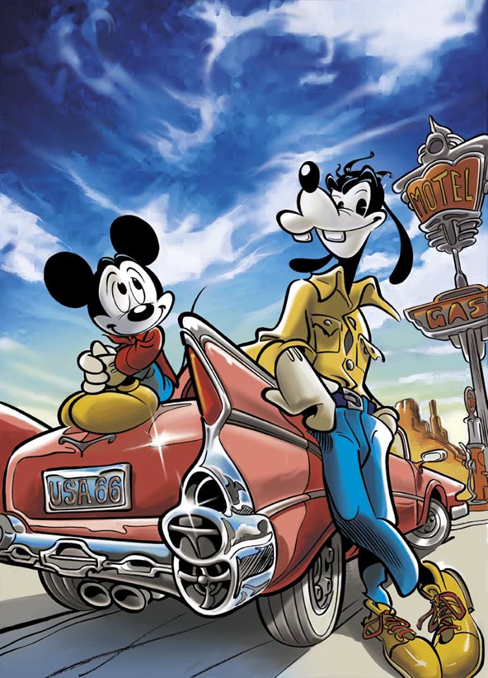 Depois de A Ilha do Tesouro, a Disney Itália nesse clima bacana de mudar as regras do jogo, sempre apresentando material de alta qualidade no que diz respeito aos quadrinhos Disney, resolveu adaptar um outro clássico literário ao universo do Mickey: On the Road, romance de 1957, obra de Jack Kerouac.