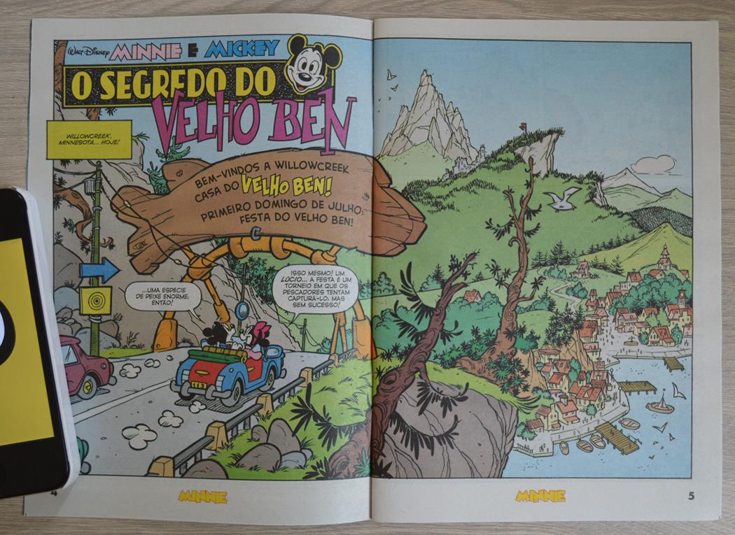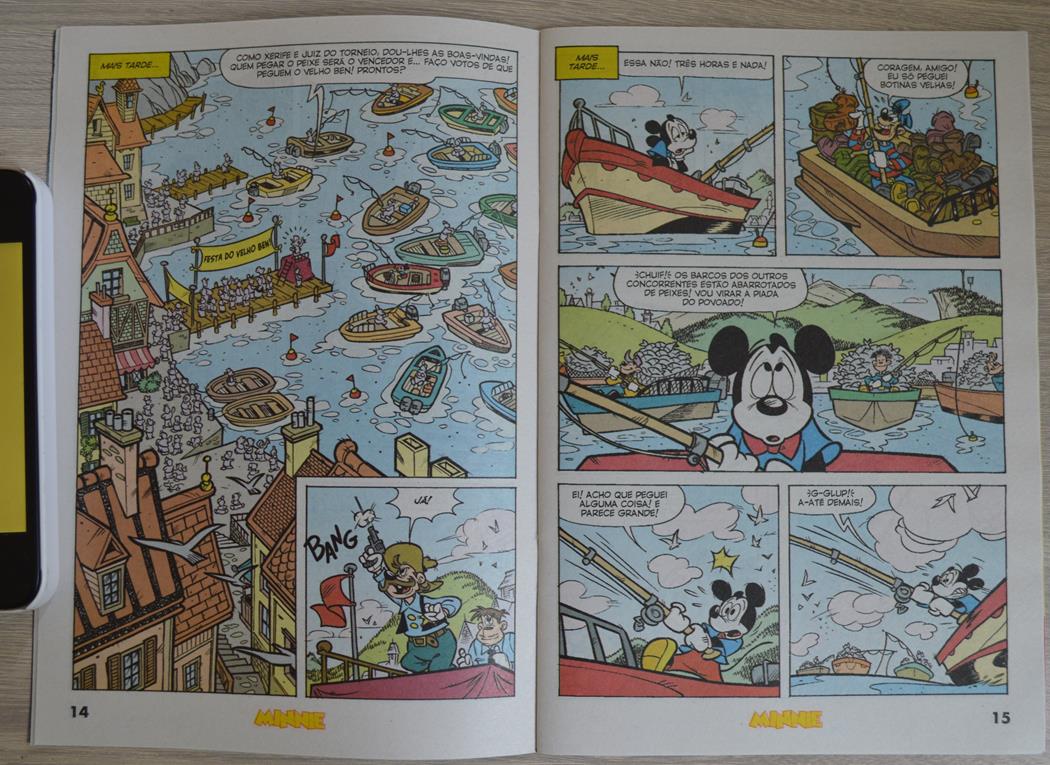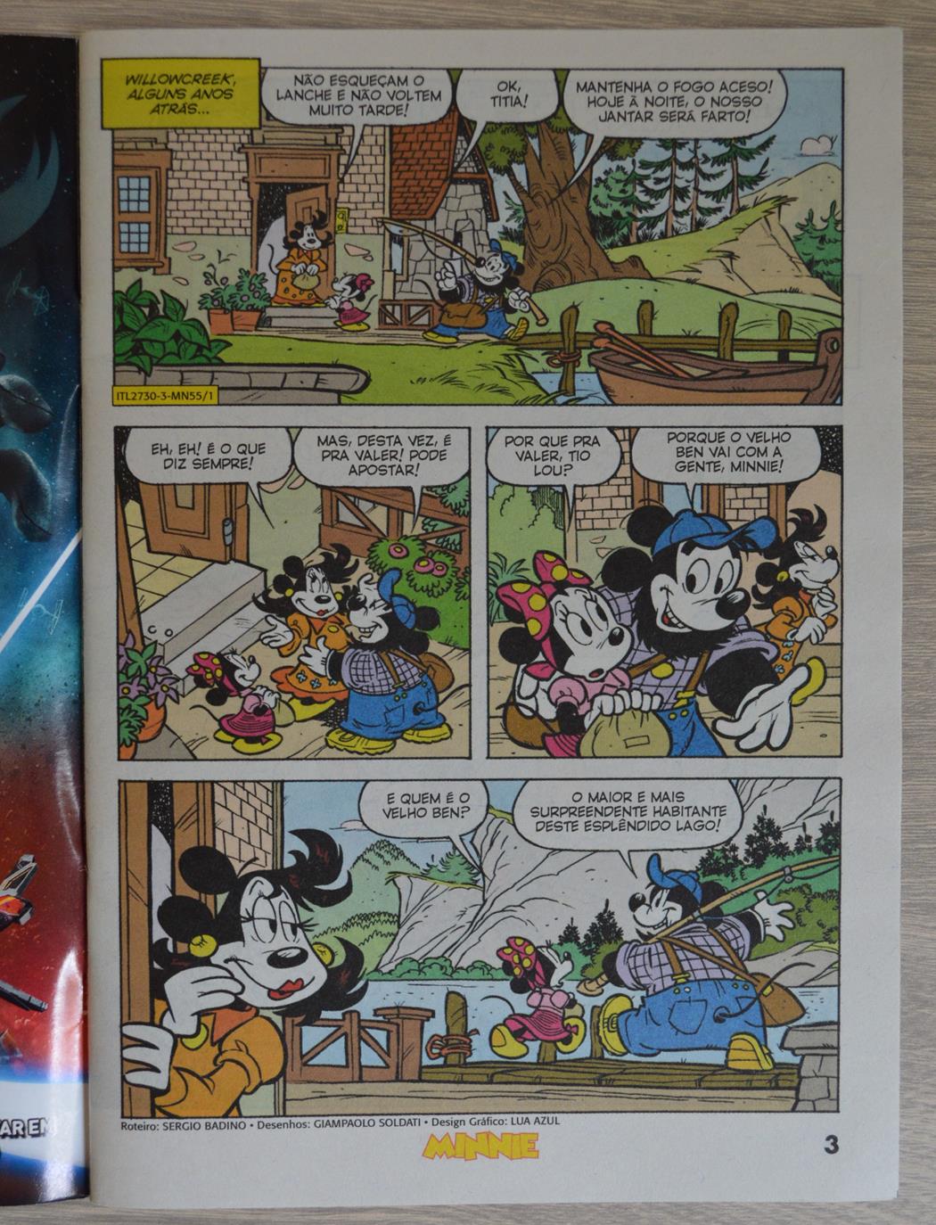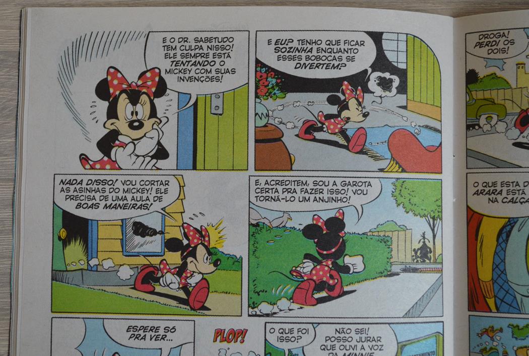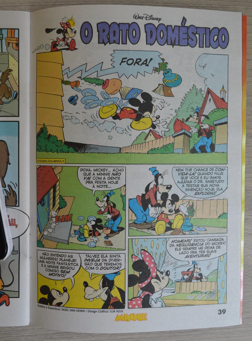Porém em Minnie eu me impressionei bastante com a HQ que abre a edição. Quando é que vemos uma HQ de página dupla em uma revista Disney? Isso é bem raro, e todo o plano de enquadramento da história e dos personagens tem seus lances para fugir do tradicionalismo do formato. Eu não estou habituado com os desenhos do autor dessa HQ, Giampaolo Soldati, porém se ele tiver mais HQs com esse estilo e traço faço meus votos para que seja publicado no Brasil! E além disso, a mensal da ratinha ainda traz uma HQ inédita do Noel Van Horn, que nunca erra a mão em suas histórias. Adoro todas!