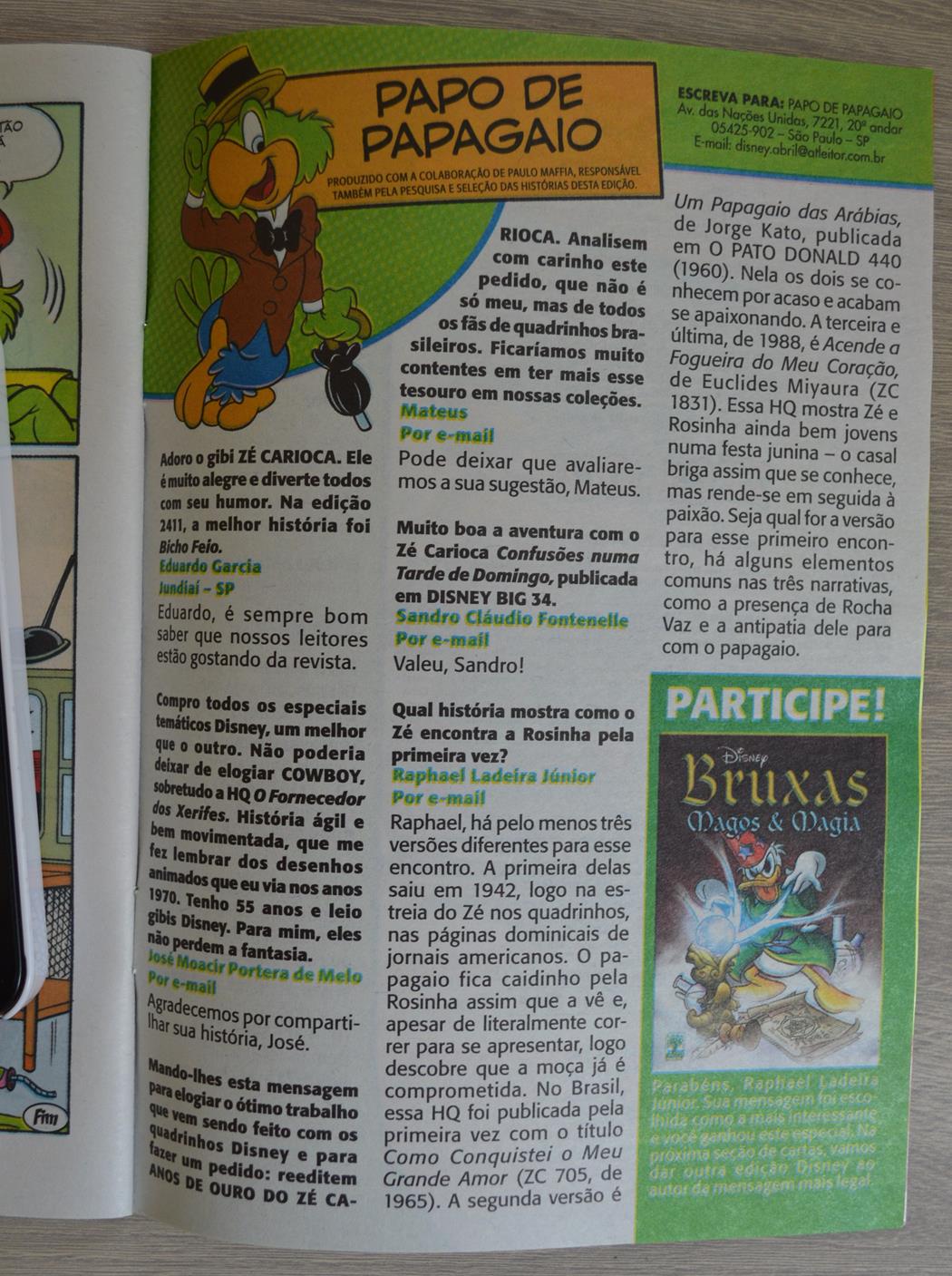 Por fim, mas não menos importante, há a mensal do Zé Carioca que veja só, pelo segundo mês consecutivo não traz uma HQ inédita em sua edição. Mês passado até tudo bem, pois a revista tinha todo um ar especial ao republicar na íntegra o arco de histórias do Zé na Idade das Pedras, porém aqui em novembro, a mensal do papagaio me pareceu tão… hum… sem charme? Fazendo falta a sua historinha inédita mensal. Perguntei ao Paulo Maffia – Editor das revistas – semana passada e ainda não existe uma data certa para quando as histórias retornam. Que mal, não?