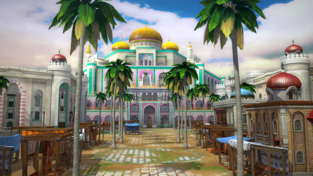 E pelas novas telas liberadas parece que houve um bom avanço na construção dos ambientes e arenas do game. Eu achei muito bom o estágio que se baseia em Skypiea, ficou bem louco com a cobra gigante ao fundo do cenário. Pena que nenhum trailer até o momento foi liberado mostrando a movimentação do cenário. Há uma outra tela que me pareceu ser um estágio baseado em Arabasta, não? Bonito também. E pensar que quando foi anunciado, havia apenas o cenário do Coliseu Corrida e um randômico no meio de uma área de árvores e grama. Bom ver que estão cuidando da riqueza dos estágios e ambientes baseado em grandes arcos do game. Espero que também façam um estágio em Water 7 e Enies Lobby!