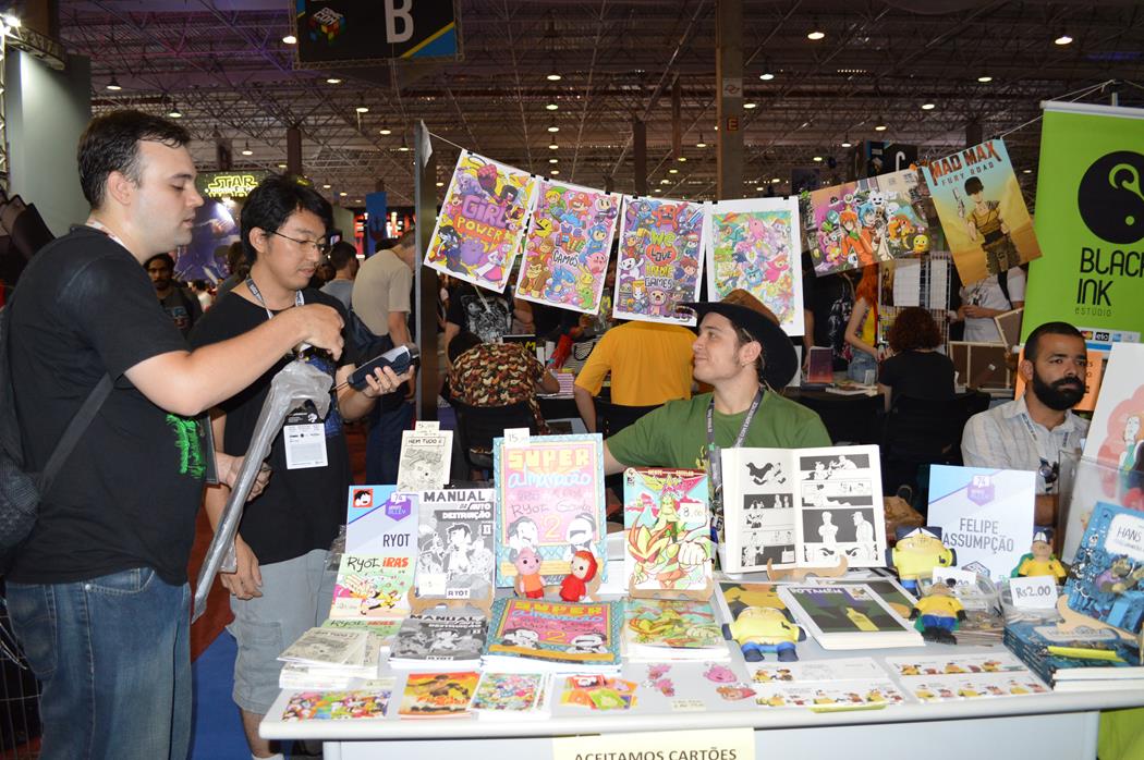 A segunda coisa, o ápice mesmo da Comic Con Experience, a meu ver, foi a Artists’ Alley, que concentrou todos os artistas nacionais de quadrinhos, desenhistas e roteiristas em um único e amigável espaço. Essa área estava incrível e pra mim é o que deveria ser prioridade para dobrar de tamanho na CCXP de 2016. Muitos quadrinhos nacionais, a preços incríveis, pôsteres, e muita gente simpática pra você conhecer. Eu me senti felizardo por poder conhecer pessoalmente o Douglas do Lamen e do Ricardo do RyotIras. Achei incrível, gostei de vários stands lá, vi muito material belíssimo que só não comprei porque o dinheiro realmente estava curtíssimo. Para uma próxima vez, espero está melhor preparado para torrar economias na Artists’ Alley. Tinha muita gente e eu não tinha dinheiro o suficiente para gastar com todos os quadrinhos incríveis que vi por lá. Felizmente muitos deles estão na Social Comics, que já assinei e em breve falarei mais do serviço aqui no site.