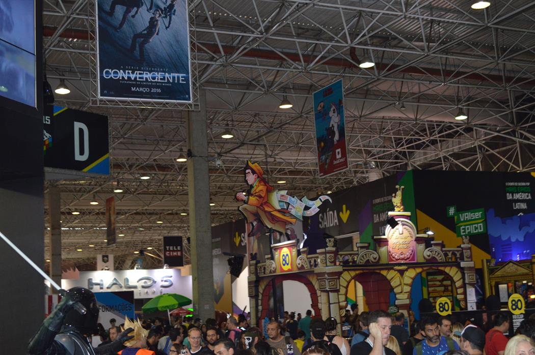 Claro em alguns stands haviam atrações maneiras. Como a Disney com uma piscina de bolinhas gigante ou a Fox com uma arena de gelo para patinação. E nestes casos eu entendo e apoio formar e organizar filas para as pessoas entrarem nestas áreas, na qual espero que tenham sido gratuitas – eu não vi qualquer aviso de que eram atrações pagas. Mas no geral eram muito mais stands que estavam promovendo filmes e lançamentos para 2016 com cenários para fotos, além de muitas, mas muitas cabines e espaços para as pessoas descansarem e carregarem seus celulares, pois parece que a grande diversão das pessoas hoje em dia é isso: bater fotos de tudo com seus celulares e estes não duram o tanto quanto deveriam durar. Você enxerga o evento através da tela do seu celular, pela quantidade de fotos que conseguiu bater de um evento.