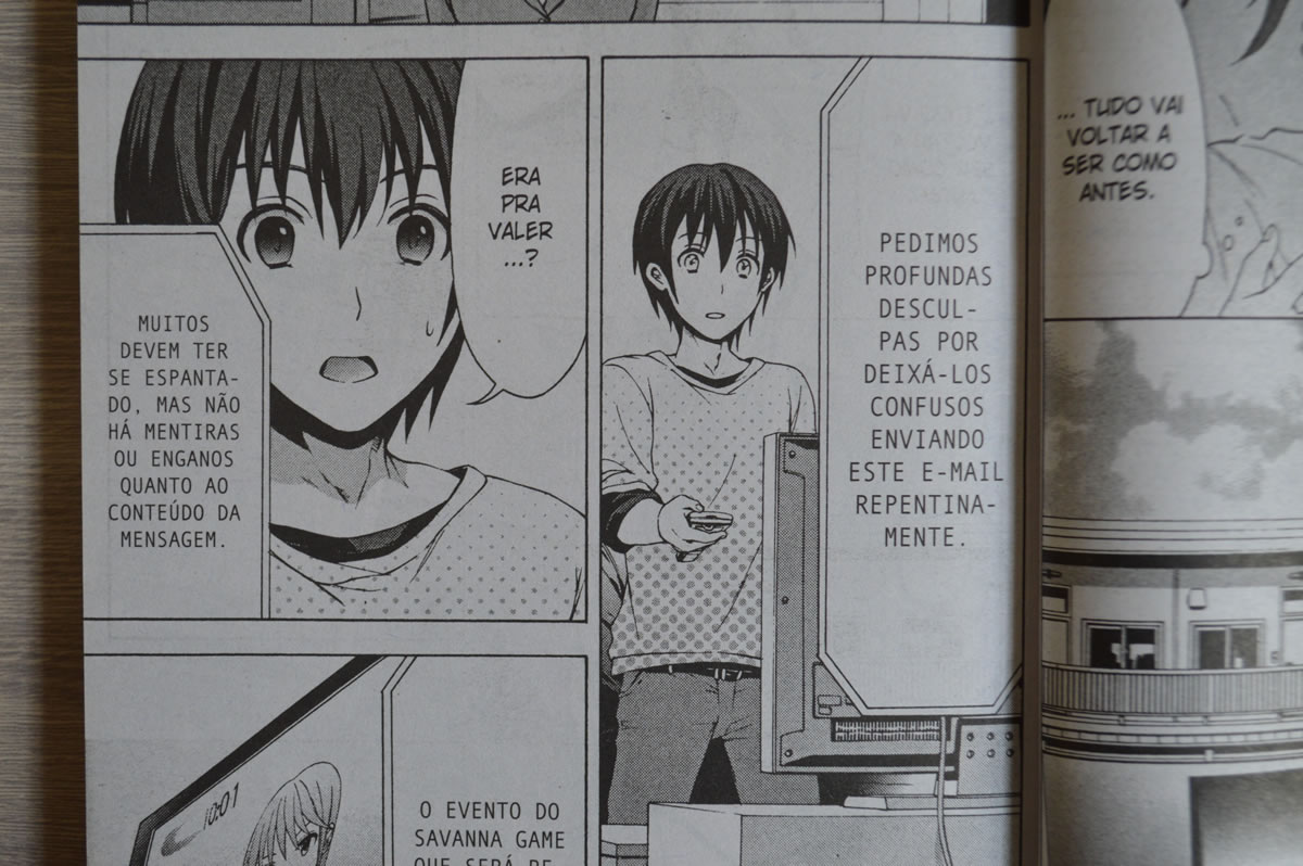 De acordo com o que pesquisei e pelo que a JBC explicou na época em que Savanna Game foi anunciado no Brasil, o mangá possui um sistema de temporadas, sendo que cada temporada dura três volumes e com um roteirista e desenhista para cada uma. Ou seja, esse arco com o Kazuya termina daqui duas edições, que já até foram lançadas no Brasil, mas que ainda não peguei para ler. E bem, esse formato dá uma perspectiva interessante de narrativa.