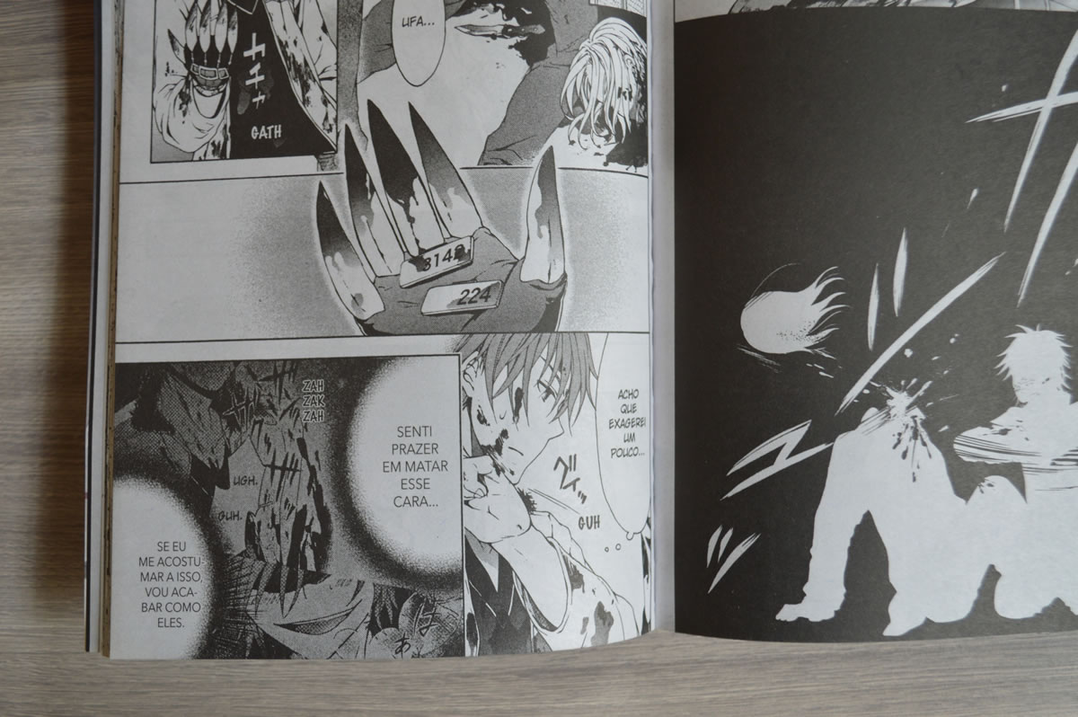 E o mangá tem um belo traço, com boas cenas de ação e perseguição. Os personagens tem traços distintos e os diálogos são instigantes. É um mangá de suspense, na qual mesmo que a trama não explique todo o surrealismo imposto pela trama, acaba criando ritmo, fazendo o leitor devorar capítulo atrás de capítulo. Até o final da primeira edição.