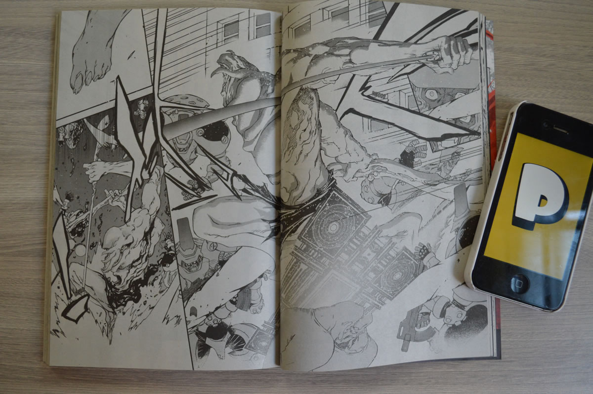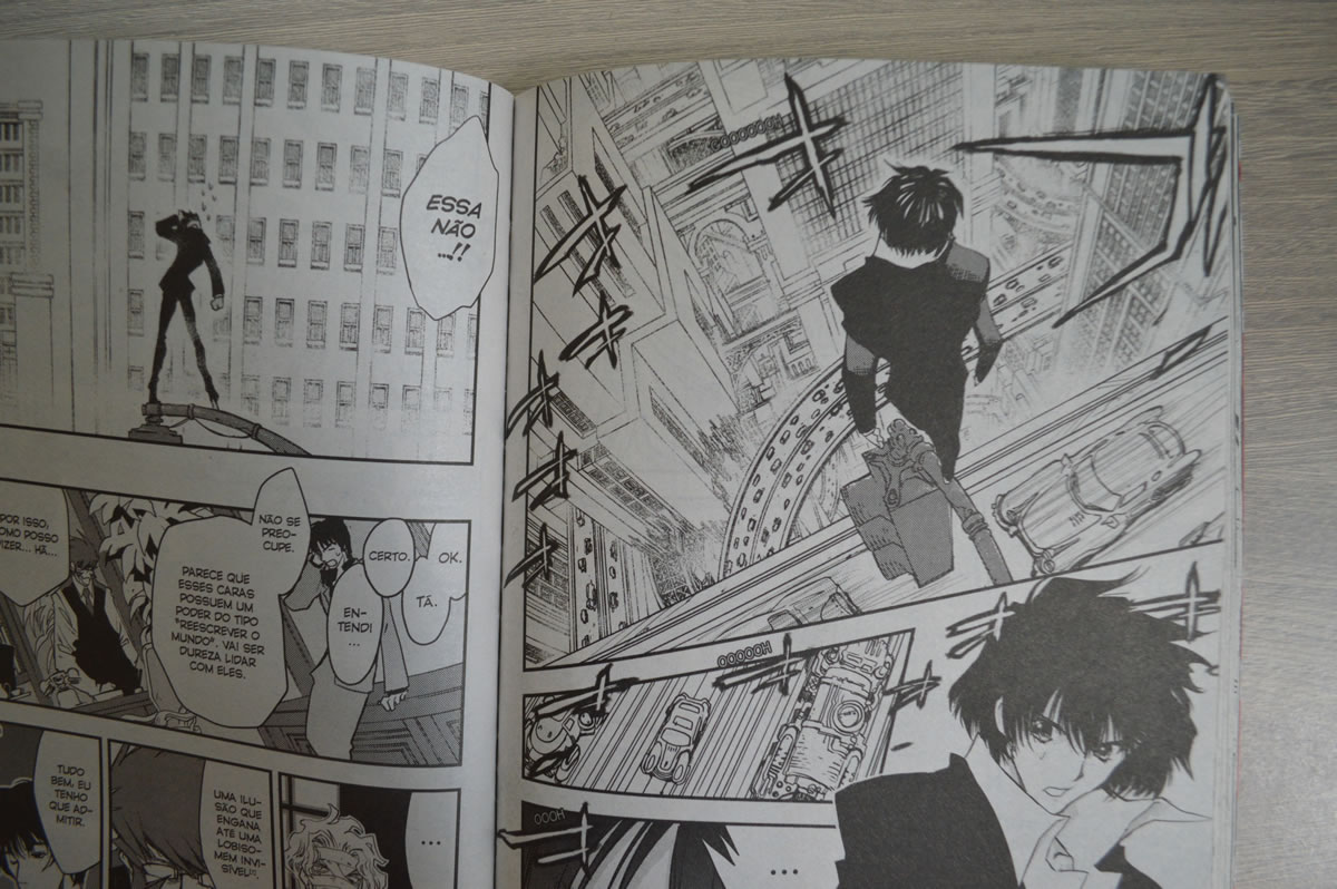 No que diz respeito ao traço do mangá digo que tem altos e baixos. Achei fenomenal a quantidade de páginas duplas que esta primeira edição possui, e todas muito bem feitas, com desenhos incríveis. Porém há vários momentos do mangá, quando alguns quadros encolhem que são bem difíceis de entender o que diabos está acontecendo na ação e com os personagens. O desenho do Yasuhiro é ótimo, mas as vezes ele perde a mão na ação e quando os movimentos dos personagens precisam indicar malabarismos ou movimentos em quadros menores, e aí os ângulos ficam todos esquisitos e eu não sei mais o que era para estar olhando ali. E olha que fazia tempo que um mangá não me confundia tanto assim. Felizmente são poucos momentos onde isso ocorre nesta primeira edição.