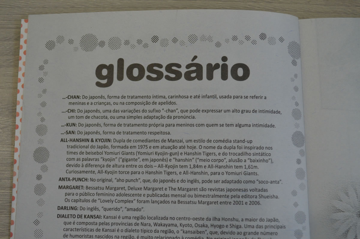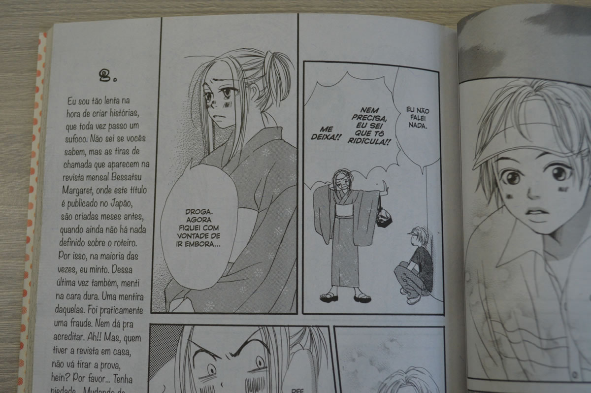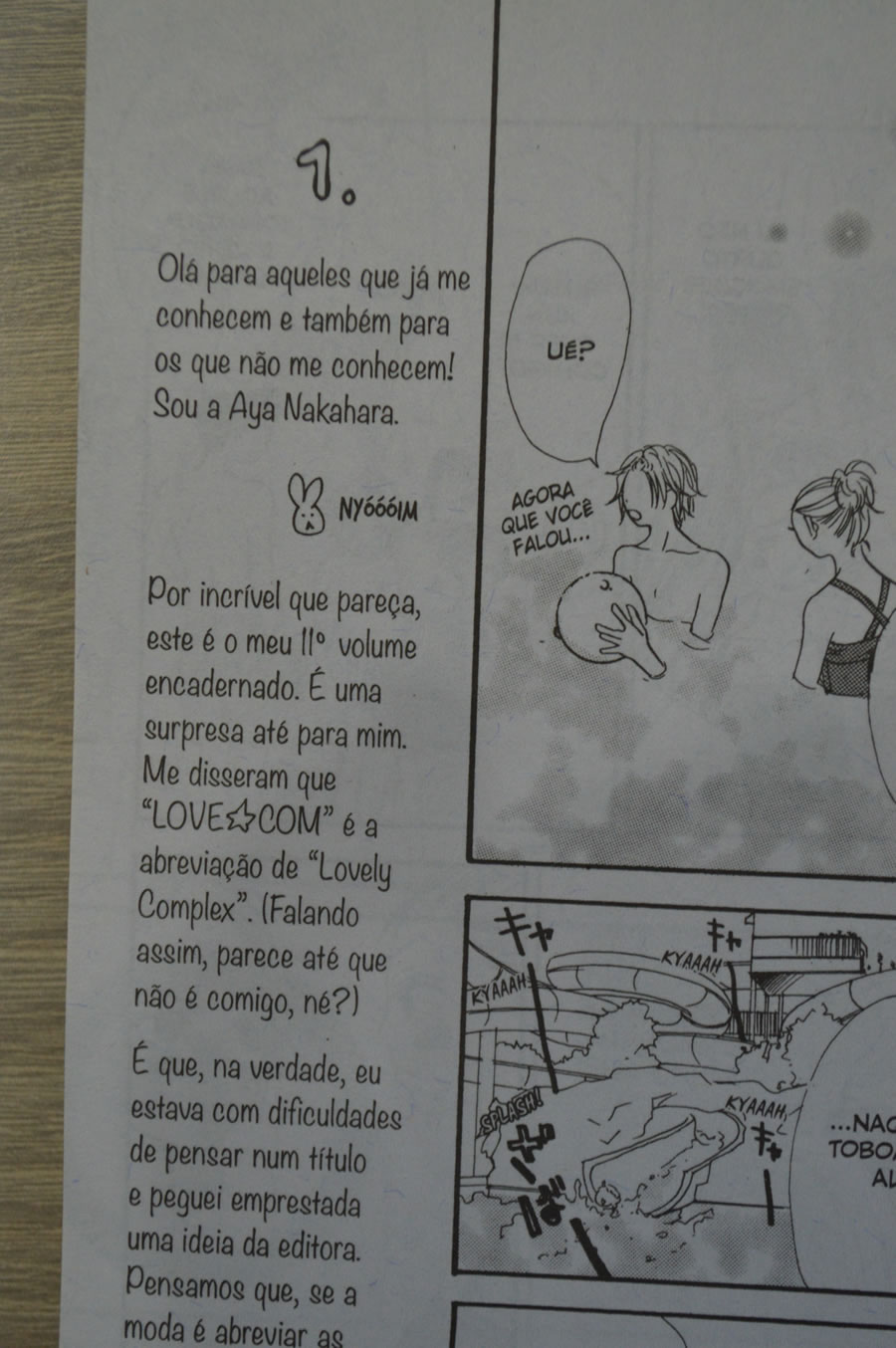 Enfim, Lovely Complex! é esse mangá lançado pela Panini no final de março. Não faz muito tempo. O terceiro volume deve estar chegando agora nas bancas, então quem se interessar ainda dá tempo de correr atrás. Lançamento em um formato bem simples, capas iguais nos dois lados de fora do mangá, papel jornal e aquele precinho antes da crise inflacionar os mangás mais famosos das linhas das editoras, ou seja, 13 reais por edição. Porém é tudo bem caprichadinho, impressão legal, freetalk colorido e extras em alguns capítulos e ao no final do volume. Gosto dessa coisa da autora conversar diretamente com o leitor em algumas páginas, dá um ar mais pessoal à leitura, como se fosse um título de uma amiga ou conhecida.