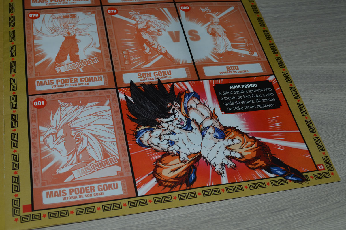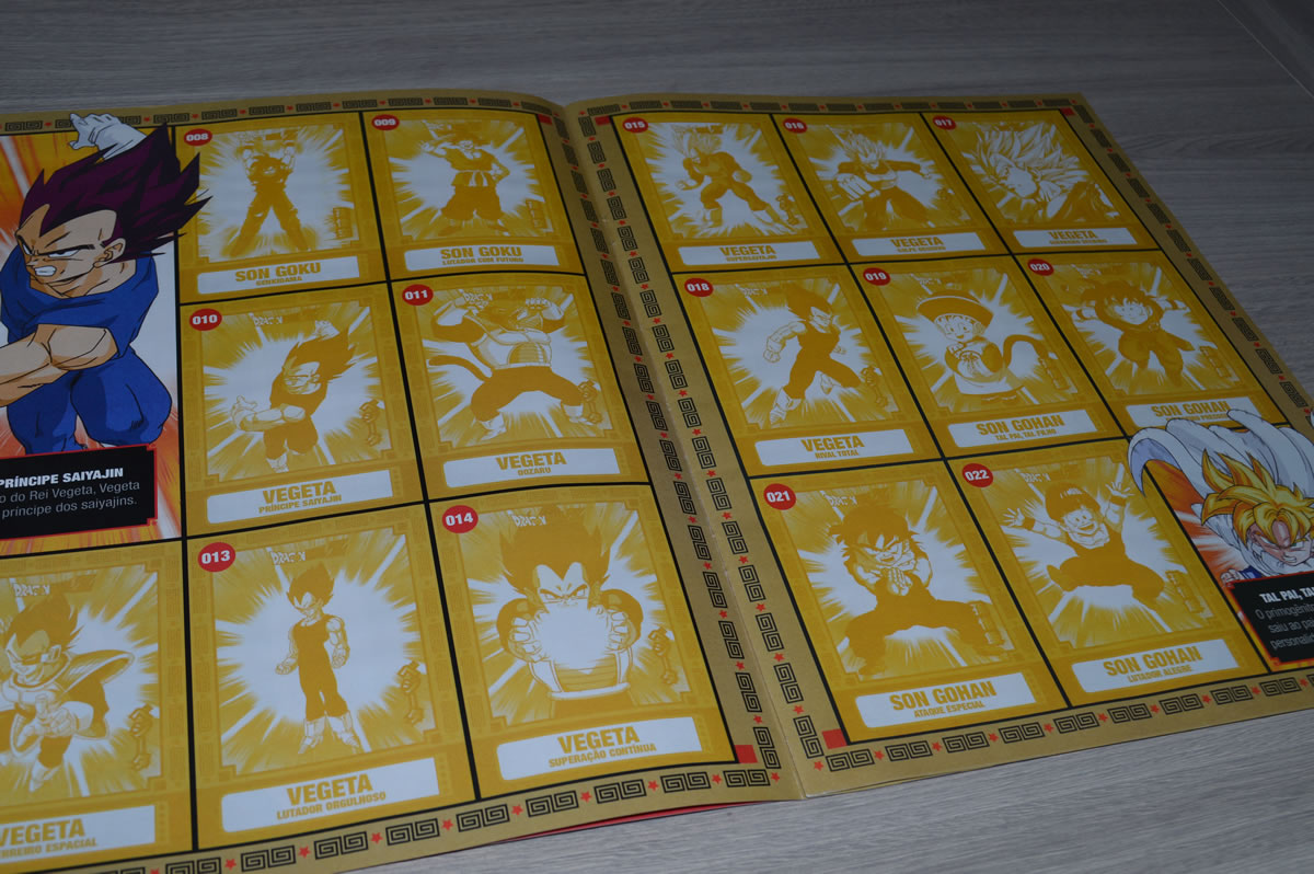 Há duas coisas que são bem legais de serem mencionadas. A primeira é a aposta da Panini por um álbum baseado em uma animação japonesa. Já fazia algum tempo que não via isso sendo trazido para cá, apesar de que atualmente há um álbum do Naruto, também da Panini, nas bancas (devo mostrar ele aqui na próxima semana). De qualquer forma é muito bacana ver como Dragon Ball Z continua tendo público e mercado aqui, fazendo concorrência com outros álbuns mais normais que estão nas bancas, como de filmes de animações do cinema, de futebol ou de princesas para o público feminino.