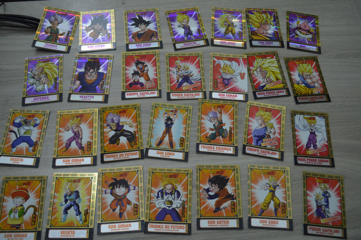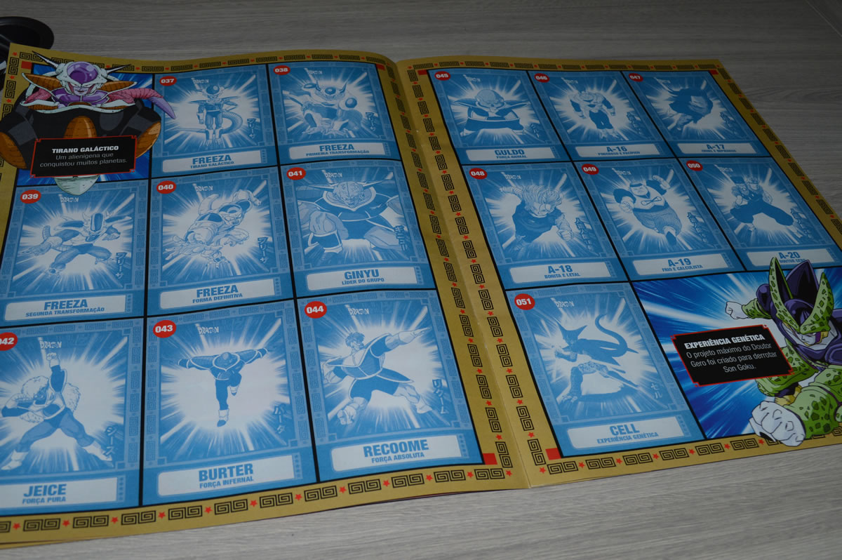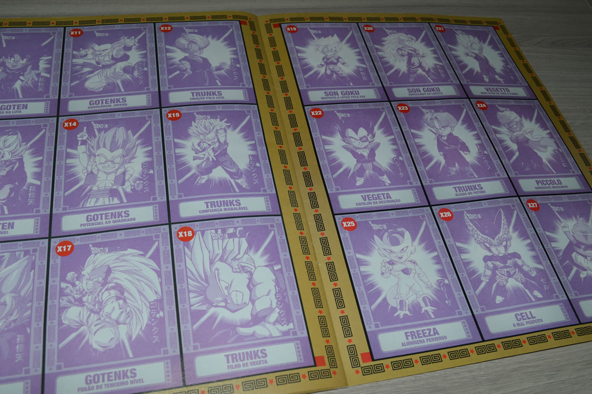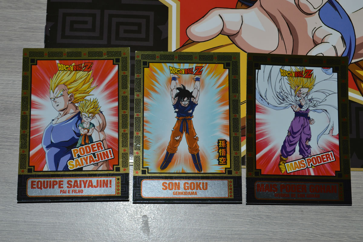 Bem, estas do Dragon Ball Z não serve para jogar carta, por sinal. Elas não tem status ou classes. É mais pelo colecionismo de fãs mesmo. Tem algumas realmente bonitas, como a do Shenlong, dos símbolos e das esferas do dragão. Fora outras com poses clássicas dos personagens. O legal é que o álbum mostram os desenhos de todos os cards da coleção.