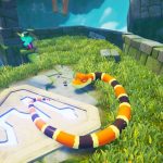 Jogabilidade não é o único ponto positivo de Snake Pass. A ambientação e a atmosfera do game são encantadores, dignos de um certo saudosismo oriundo de games como Banjo-Kazooie. Tudo é muito colorido, muito vivo. Sem mencionar que é uma dupla de personagens, Noodle a cobra e Doodle o beija-flor.