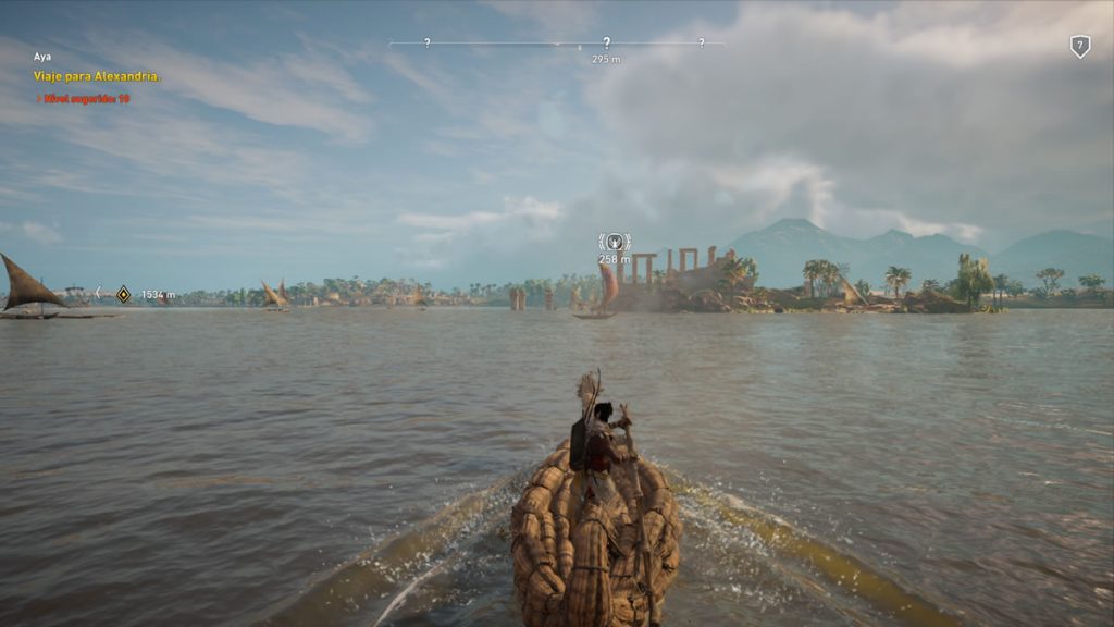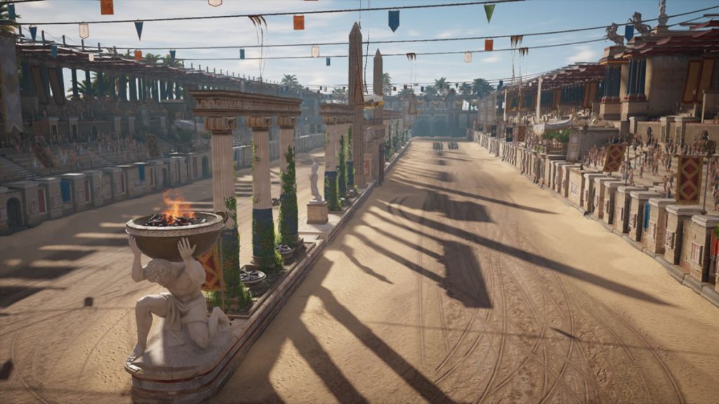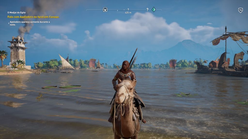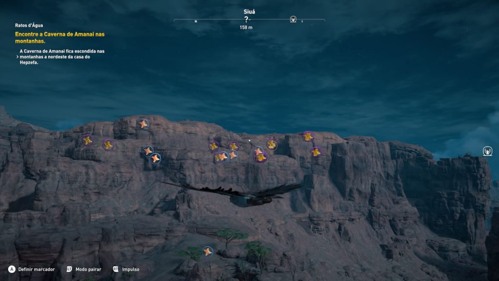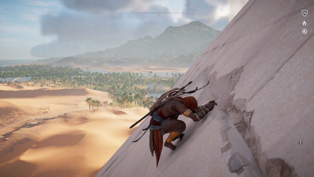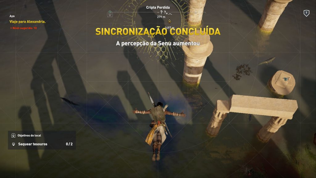 Alias, já ia me esquecendo, a águia adicionada no game é um recurso de mecânica excepcionalmente genial. É como um drone, só que muito melhor. Com um comando o jogador coloca uma águia no céu que identifica inimigos, tesouros, alvos etc. E tudo em tempo real, sem carregar telas ou ter que esperando longos segundos, sem amarras de distância de onde Bayek se encontra. Podendo inclusive “pausar” a águia no ar para uma boa visualização da área desejada.