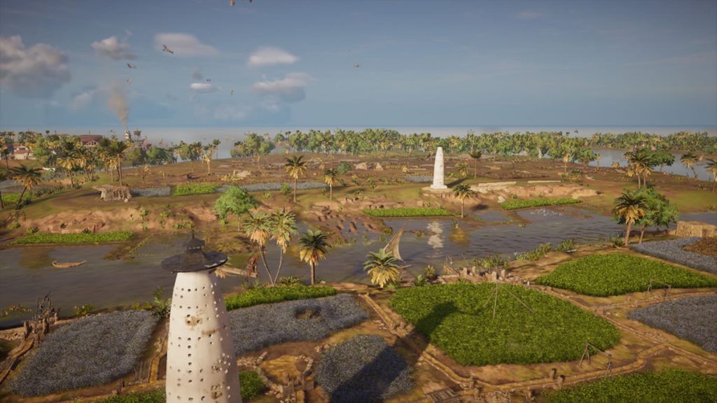 Inspiração não veio apenas de For Honor não. O mapa de Assassin’s Creed Origins é tão grande e bem dividido que lembra o trabalho bem feito que Ghost Recon Wildlands foi no começo do ano. E não é porque o jogo se passa no Egito que significa que boa parte de sua área é apenas deserto e mais deserto. Nada disso. O game possui ambientes riquíssimos em biodiversidade.
