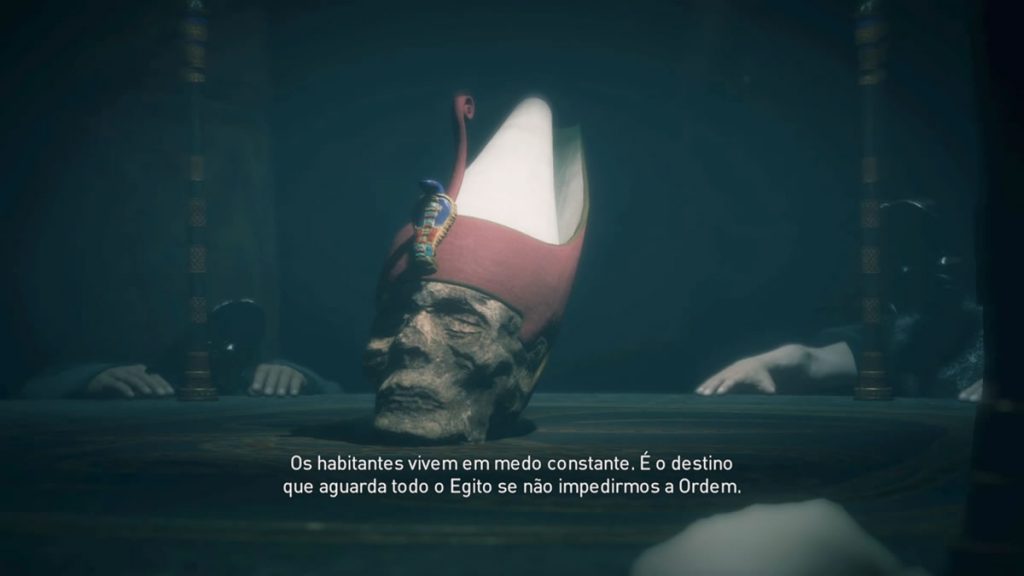 Existem muitas cenas de conversas e diálogos ao longo do gameplay? Sim, mas elas podem ser puladas caso o jogador não curta os diálogos, ainda que eu tenha me interessado por quase todas histórias apresentadas no game, mesmo as secundárias, que também adicionam camadas a personalidade à Bayek.