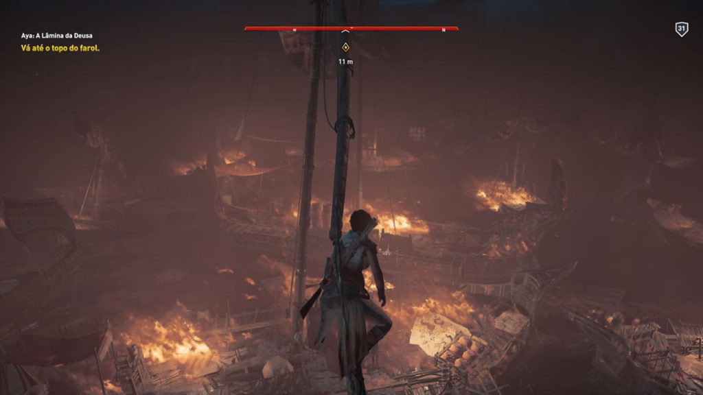 E mesmo assim, pouco importa a história do presente, pois ela é muito pequena e não tem qualquer importância a proposta da trama principal em si. Está ali apenas por estar, como um aspecto que não tem como arrancar do DNA da franquia. Foi a época em que nos importávamos com esse plot moderno, quando suspeitávamos que um dia poderia haver um Assassin’s Creed em tempos modernos. Passou tanto tempo e nada ainda indicou que um dia isso realmente pode acontecer. Eu já desisti.