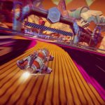 A atmosfera do game é totalmente contagiante. Futurista, cores vibrantes e hovercars, que são muito mais legais do que carros tradicionais! Não consigo concluir se é uma comparação justa, mas o título estão me fazendo pensar em algo como F-Zero com uma mistura de Splatoon.
