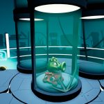 A ideia é atirar em tudo que lhe perseguir e pular nas plataformas que correspondem a cor da sua geleca, alternando-as em tempo real quando as plataformas mudarem de cor entre um salto e outro. Com dois jogadores isso deve rendem algumas mortes e risadas certamente.