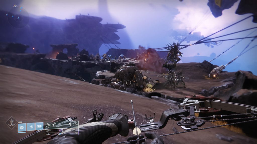 E ainda não mencionei a melhor nova arma do game, na minha opinião é claro: o arco! E admito, não imaginei que um arco e flecha pudesse realmente combinar com esse arsenal maluco que Destiny já possui. Como um arco poderia competir com um fuzil de energia? Pois é, mas funciona perfeitamente bem. É gostoso atirar, causa um dano considerável nos inimigos, e é melhor para mirar do que com uma canhão de mão.