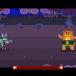 Tudo isso na forma de diversas piadas de riso fácil. Me diverti muito com um chefe que se vangloria por ter aprendido a se incendiar para conseguir atacar seus inimigos com mais força, mas logo se dá conta de que não sabe como pagar as chamas. Além disso, toda vez que um inimigos novo aparece ele tem um aviso na tela e uma apresentação em tela cheia, o que é um toque bem dinâmica e charmoso para o game te mostrar que sempre tem alguém inédito surgindo ao longo da progressão.