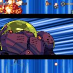 Voltando a mencionar no diferencial de Rival Megagun, o jogo tem uma ideia interessante quando jogado em modo cooperativo em dois jogadores. Nesse formato um jogador compete com o outro, tornando seu rival. Assim o game funciona em tela dividida com uma progressão vertical (a tela avança para cima), e aí um jogador pode atacar o outro, enviando mísseis para a tela ao lado. Mas não só isso, o jogo escala até um momento em que um dos jogadores se torna o chefe de seu rival, quando sua nave mega transforma em uma super nave para na tela do adversário. Diferente, não?