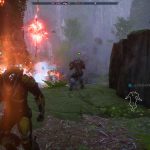 Houve inclusive uma situação de chefe, uma máquina gigante, onde todo o time perdeu para ela umas quatro vezes antes de conseguirmos derrotá-la. Fora isso, Anthem também possui uma boa variedade de inimigos diferentes. Deu para lutar contra inimigos “humanos/aliens” normais, assim como criaturas selvagens desse mundo, como algo parecido com pterodáctilos, caranguejos e escorpiões gigantes, lobos enormes entre outras bichos estranhos. Essa diversidade foi outro ponto que me agradou.