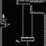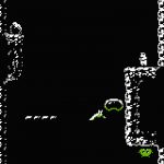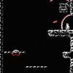 Ao atirar, o personagem meio que ganha um recuo para cima, o que lhe garante frear momentaneamente sua queda constante. Essa mecânica é o ponto chave do jogo, pois cair em queda livre sem parar não teria qualquer graça. A ideia é cair, atirar, ter esse recuo que lhe garante alguns segundos para ver o que virá a seguir e continuar caindo. Mas calma, sei que isso soa difícil, porém fique tranquilo, pois também há plataformas e pontos de chão nas quedas de Downwell. Claro que parar para descansar em uma plataforma meio que quebra seu combo de inimigos eliminados com pulos ou tiros, o que em um jogo de arcade obviamente isso irá penalizar sua pontuação final.