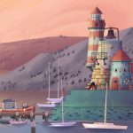 Este é um jogo definitivamente muito colorido na maior parte do tempo, e assim como comentei quando escrevi sobre Candle: The Power of the Flame, aqui temos a sensação de estar folheando livros infantis pintados a giz, igual ao que lemos quando éramos crianças. E veja só, não pense que não se pode interagir com esses detalhes do mundo do jogo, pois cada cenário possui alguma forma de interação com alguns pequenos elementos de ambiente. Seja em fechar janelas abertas, ou mexer com pessoas em algumas destas janelas, ou em mexer com os sapos que estão na lagoa. Há diversos exemplos assim.