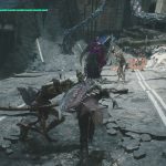 A jogabilidade com V é muito diferente, e por mais que soe caótica, me pareceu ser a mais apelativa e acessível entre os três personagens disponíveis. É o mais fácil de conseguir altos combos e é também um combate mais seguro, já que V está quase sempre distante dos inimigos. É possível automatizar os ataques, tornando fácil gerenciar confrontos muito complexos. Claro que as invocações tem limitações, assim como uma barra de saúde para cada. Uma vez derrotadas, é preciso aguentar alguns segundos na batalha para que elas retornem. Uma barra de poder demoníaco é recurso essencial nos estágios com V.