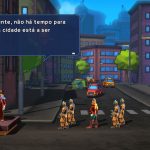 Quanto as armas, disse que elas possuem variações e precisam ser adquiridas com dinheiro ganho após cada batalha. Mais corações também podem ser adquiridos dessa forma, em um loja que fica na base desse comando de força contra os robôs. Essa base, por sinal, é um espaço pré-batalha que é bem simples: há alguns personagens ali falando sobre a história do jogo, mas não é nada mais do que isso. Há também um fliperama que representa um simulador de batalhas. Ali se pode jogar novamente todas as missões vencidas e ganhar mais dinheiro. Nesse modo replay pode-se tentar ganhar estrelas de performance, derrotando muito rapidamente os chefes previamente vendidos. É uma espécie de “bata seu recorde”.