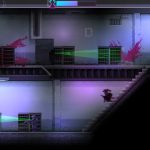 Normalmente não sou grande fã dos jogos que pintam tudo de sangue explicitamente, tanto que joguei Sekiro :Shadows Die Twice com efeito de sangue jorrando desligado (percebeu aqui?), mas em Katana Zero isso não me incomodou. Talvez por conta de ser pixel art, de não ser mega realista, mas também porque está intrínseco no DNA do jogo. O movimento que o samurai faz, o som e o peso do corte da sua espada quando pega um inimigo. Sem falar no fato de que o sangue fica no cenário. Não é algo que vai desaparecer depois de alguns segundos. Até mesmo na história, a forma como o samurai mata seus inimigos, vai ser mencionado e pesar para a construção do personagem. Acaba sendo um efeito que não é nada gratuito.