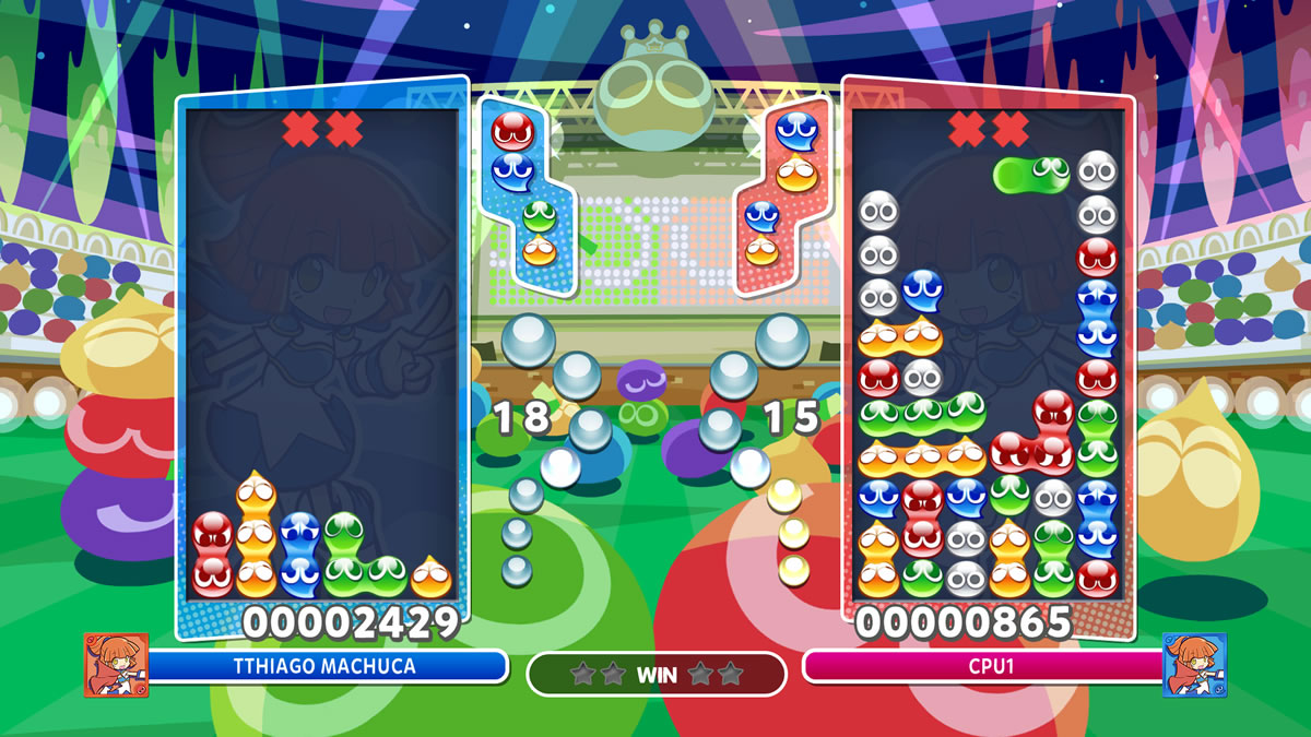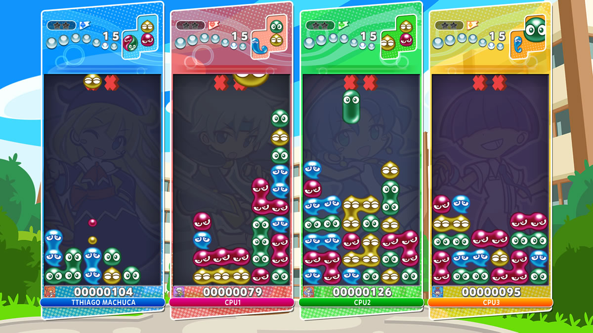 Sendo assim, Puyo Puyo é um jogo de competição. Não é um título para jogar sem a pressão de alguém competindo ao seu lado. Não é para relaxar, como Tetris pode ser em algumas modalidades. Puyo é um jogo onde o tempo não está à seu favor. A pressão do adversário está sempre lá. Jogue devagar, relaxe demais, e o resultado será apenas a derrota. É um jogo perfeito para competições.