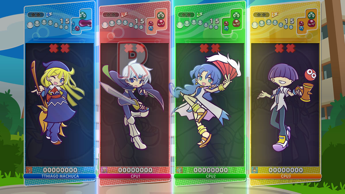 E quanto àqueles que se perguntam no motivo de apostar em Puyo Puyo Champions, sendo que esta geração já conta com o ótimo Puyo Puyo Tetris… bem, acredito que a proposta de ambos os títulos seja um tanto diferente. Não posso dizer muito sobre Puyo Tetris, pois não o joguei – apenas vi a seu respeito em análises e vídeos -, mas me parece que é um título que tem como proposta dar algo diferente do jogo tradicional da série Puyo. Parece funcionar tão bem em single player, quanto em multiplayer. Diferente de Champions, que é focado na experiência do multiplayer competitivo e regrado pelas duas fórmulas mais clássicas de Puyo Puyo.