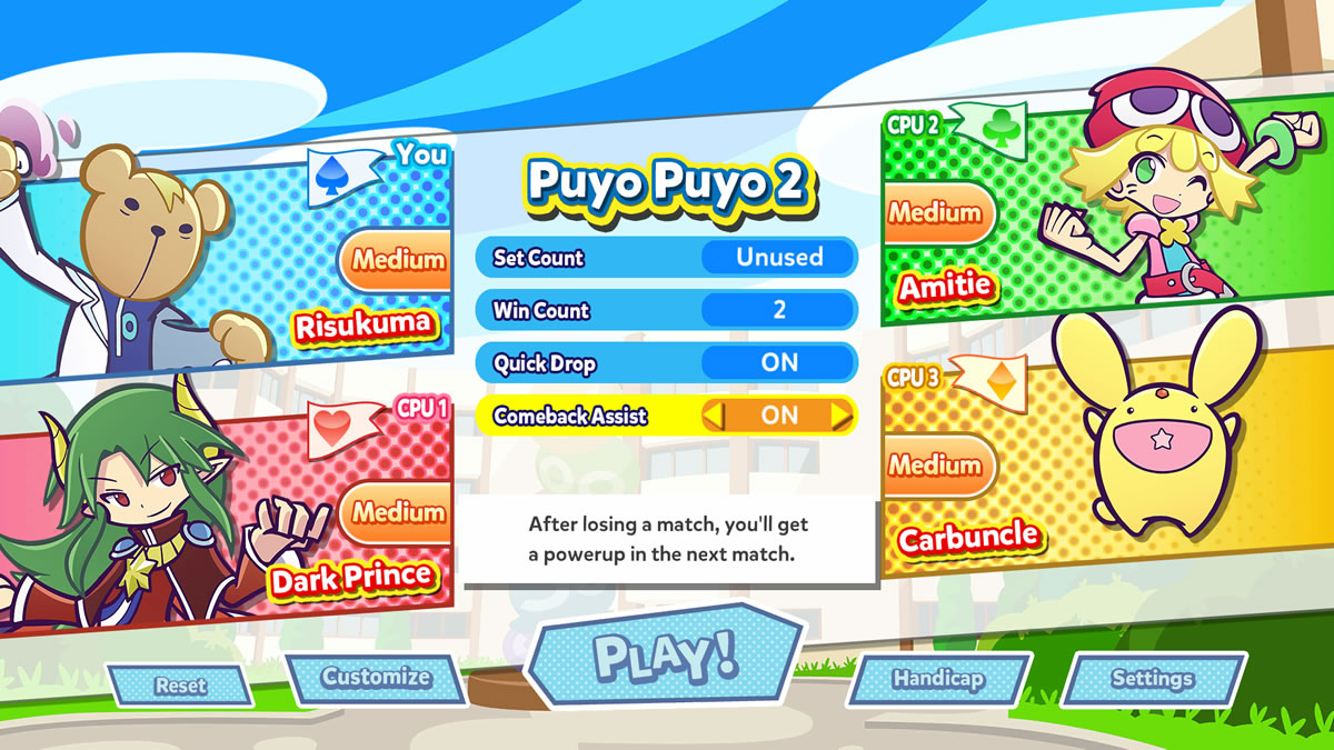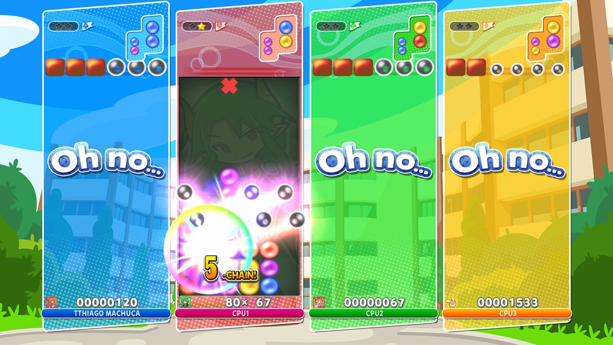 Quem já joga Puyo Puyo deve se sentir em casa, porém aqueles não muito acostumados com a série vão se sentir desorientados inicialmente. Sem saber por onde começar, ou como começar. Minha dica? Jogue com amigos, e não se sinta mal em ser derrotado pela CPU aqui. Parece que o jogo foi criado exatamente para você não vencer com frequência partidas contra o computador.
