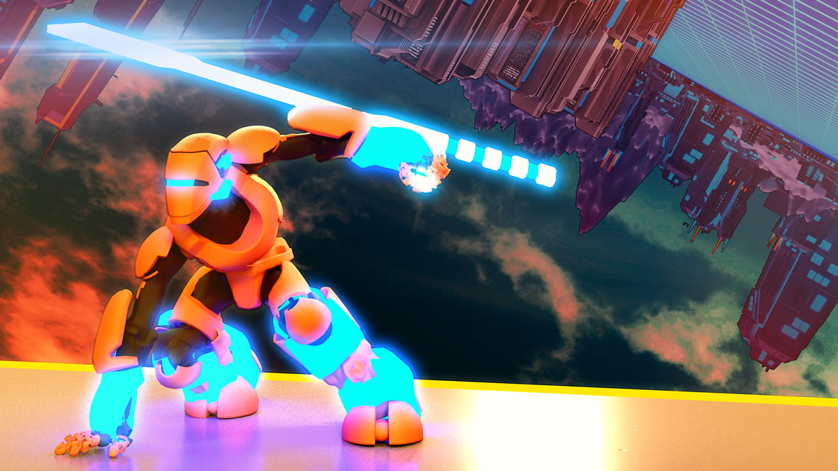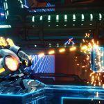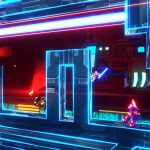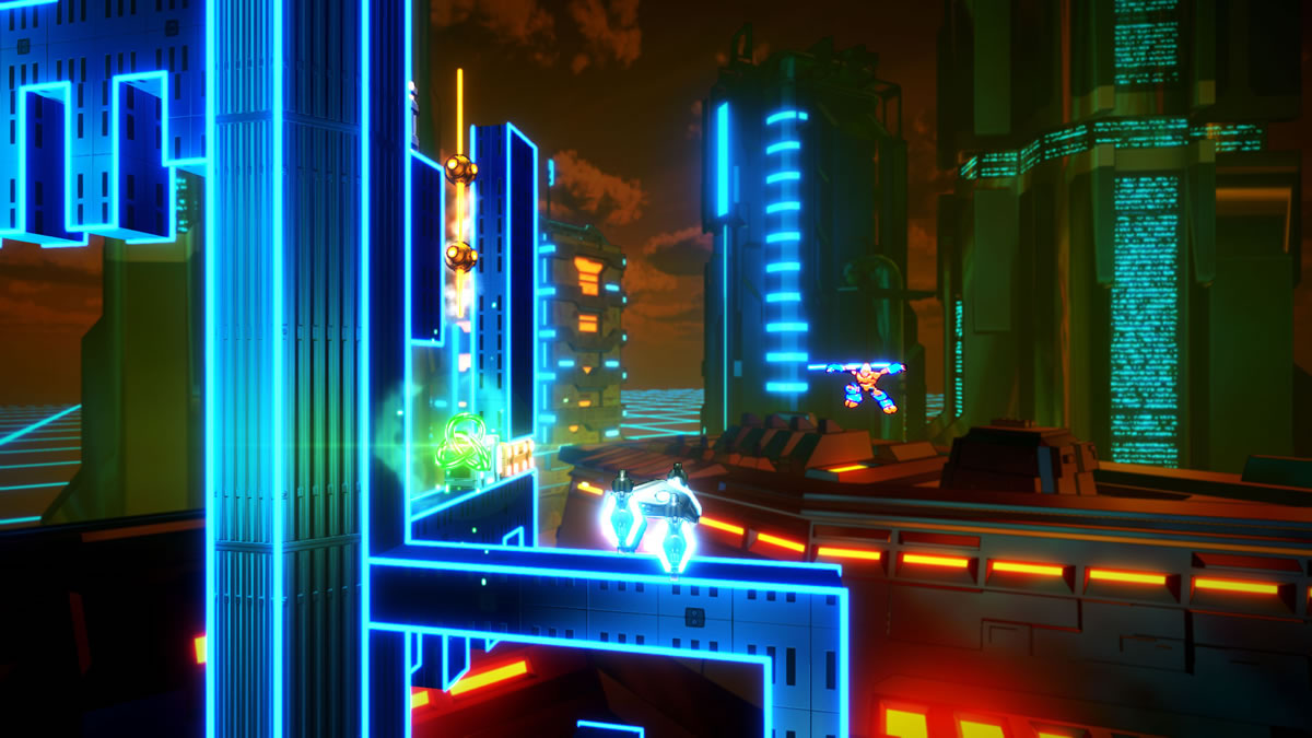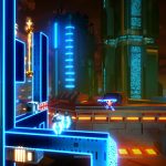 A arte do jogo chama bastante atenção, com efeitos neon e mito uso do laranja e azul para representar um mundo dentro do ciberespaço. A geometria do ambiente do jogo também soa convincente para transpor um mundo dentro do computador. É como outras referências como Tron e Reboot me ensinaram a imaginá-los anos atrás.