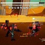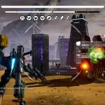 Visualmente o título desperta a atenção, com o bom uso de cores vibrantes e por seguir um estilo mais de animê e cel shading do que visuais ultrarrealistas. Combina com o estilo adotado por muitos jogos do Nintendo Switch e não sobrecarrega o poder de processamento do console. Algo que muitos jogos tem tropeçando nas versões bases do Xbox One e PlayStation 4 só porque estes consoles possuem versões “prós”. Mesmo nos momentos mais caóticos, não notei frame rate caindo, tela congelando ou sensação do jogo estar sofrendo com qualquer tipo de engasgo. O ambiente ao redor das arenas pode ser simples e pouco expressivo, mas é realmente difícil prestar atenção nos cenários que se está rodando como um maluco atrás de drones, tanques e outros mechas que estão por toda parte. Fora que os efeitos estilizados de laser, tiros, explosões e fumaça são realmente bem legais.