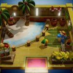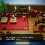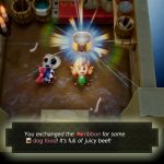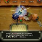 Esse elemento agrada a muitos aspectos dentro do jogo. Talvez não das masmorras, onde o visual tende a ser mais repetitivo e sem tantos elementos de cenário, mas, por exemplo, torna bem legal as quests de troca de objetos que se faz presente no mapa principal do jogo. Aqui o jogador ganha um objeto e vai trocando por outros, com os mais diferentes NPCs. É bem legal a reação de cada um, e certas piadinhas que existem dentro dessas etapas, incluindo a foto da Peach (de Super Mario) ser entregue a um destes personagens. Há muito humor em Link’s Awakening. É uma forma também que o jogo encontrou para fazer o jogador conversar e conhecer todos os excêntricos personagens da ilha.