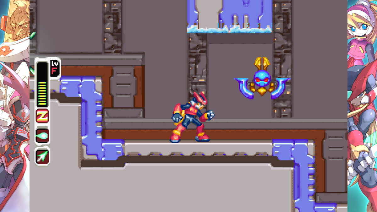 O que não posso também deixar de mencionar, ainda nos aspectos de fugir das regras clássicas, diz respeito ao arsenal que Zero consegue ao longo da aventura do primeiro jogo, que retorna e se aprimora nas sequências. Aqui o Z-Saber ganha companhia de outras armas, como um escudo bumerangue que reflete projéteis, e também uma lança que se expande ao se repetir o mesmo botão de ataque. Já a partir do segundo jogo, Zero ganha até mesmo um chicote gancho, usado para atacar inimigos e também grudar no teto do ambiente, podendo se balançar para saltos a longa distâncias.