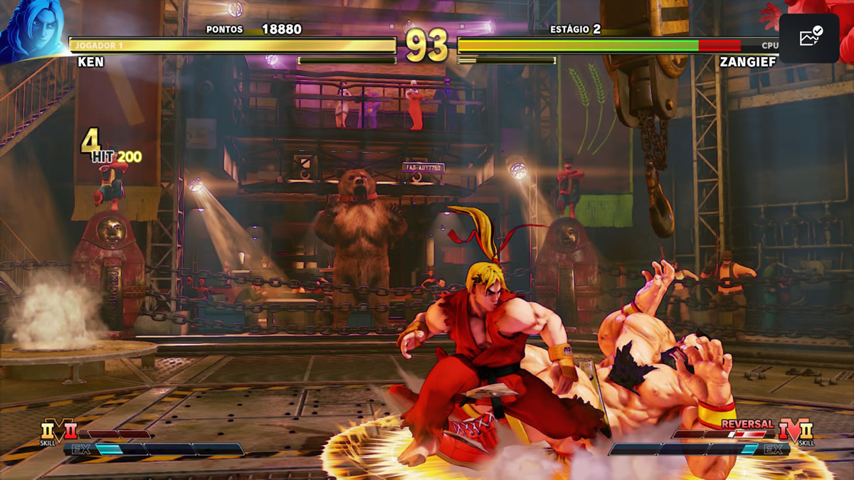 Não é dá para dizer que o jogo rode de uma forma mais bonita ou com melhor performance de elementos gráficos que talvez engasgassem no PS4. A taxa de quadros soa cravada nos 60FPS do console, mas já era uma taxa de quadros conquistada tanto no PC quanto no PS4. Nesse sentido não percebi qualquer momento em que a taxa de quadros engasgou, ainda que também tenha ficou longe de me impressionar – e talvez seja apenas porque a jogabilidade de SFV seja um pouco mais lenta do que a de SFIV, como já abordado neste texto.