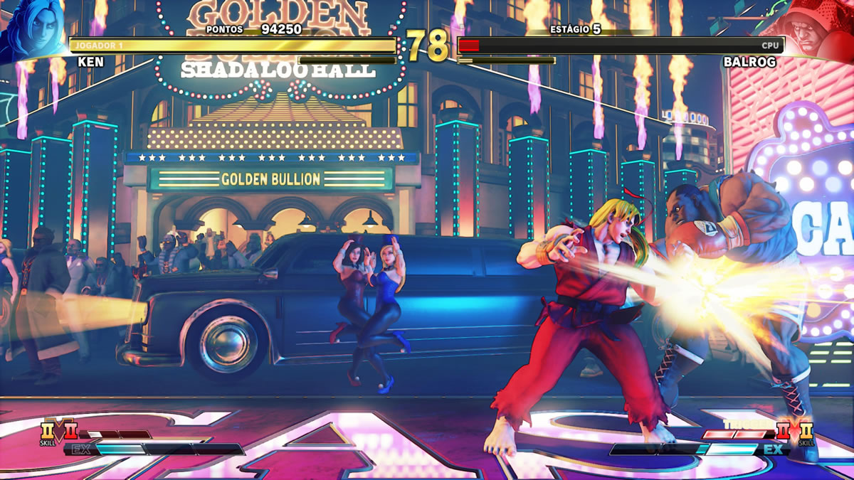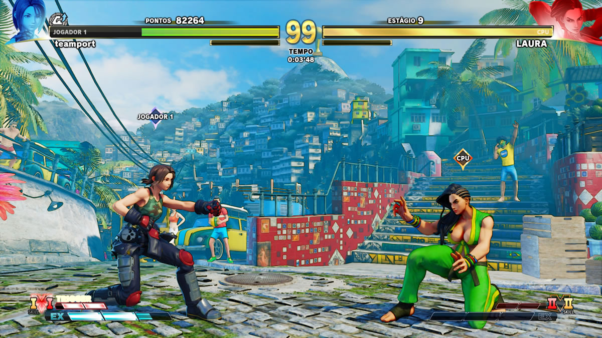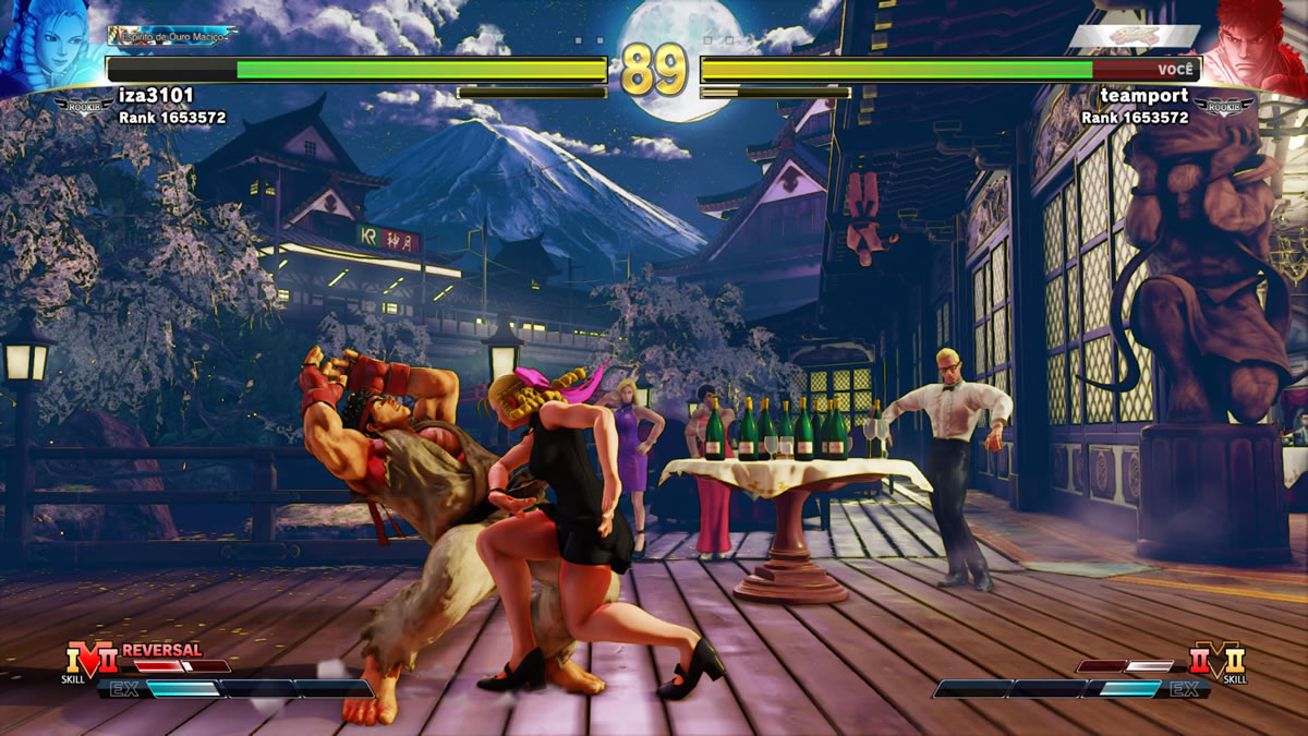 Em termos de estágios, somando a Champion Edition, 5º Passe de Temporada e DLC da Capcom Pro Tour 2021, o jogo já contempla 33 estágios, e nisso não estou somando as variações temáticas que muitos possuem. São muitos ringues de batalhas, incluindo aí alguns remakes incríveis de arenas dos jogos clássicos da franquia. Adoro, só para citar um, a Suzaku Castle, que vem lá do inesquecível Street Fighter II. A nova versão é uma coisa linda.