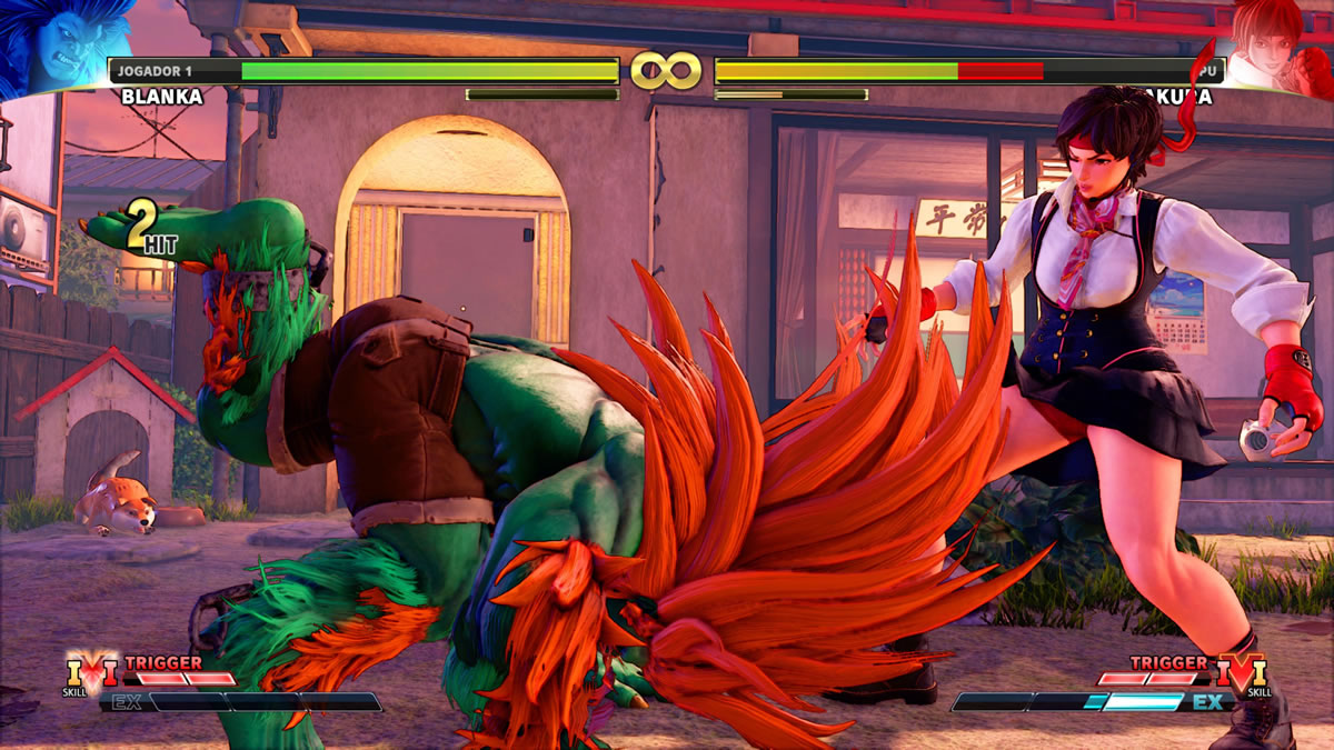 Além disso, com um elenco de mais de 40 personagens, até mesmo o jogador mais casual vai encontrar meios de se entender com alguns personagens que foram desenvolvidos para uma experiência mais simples e básica. Ryu é o clássico exemplo disso, contudo me senti bastante confortável também com o estreante Rashid, que usa movimentos simples, dentro o clássico meia lua, enquanto pode atacar de longe com seus redemoinhos, quando de perto com seus ágeis giros e pontapés. Falando de uma adição mais recente ao elenco, a personagem Akira, a qual sua origem vem da franquia de jogos Rivals School, e que estreia nesta edição de Street Fighter, também é uma personagem super ágil e com comandos fáceis de serem executados. Akira tem um golpe que ela se impulsiona para a frente e golpeia muito rapidamente o oponente, derrubando-o e permitindo que ela cole muito rapidamente próximo ao mesmo.