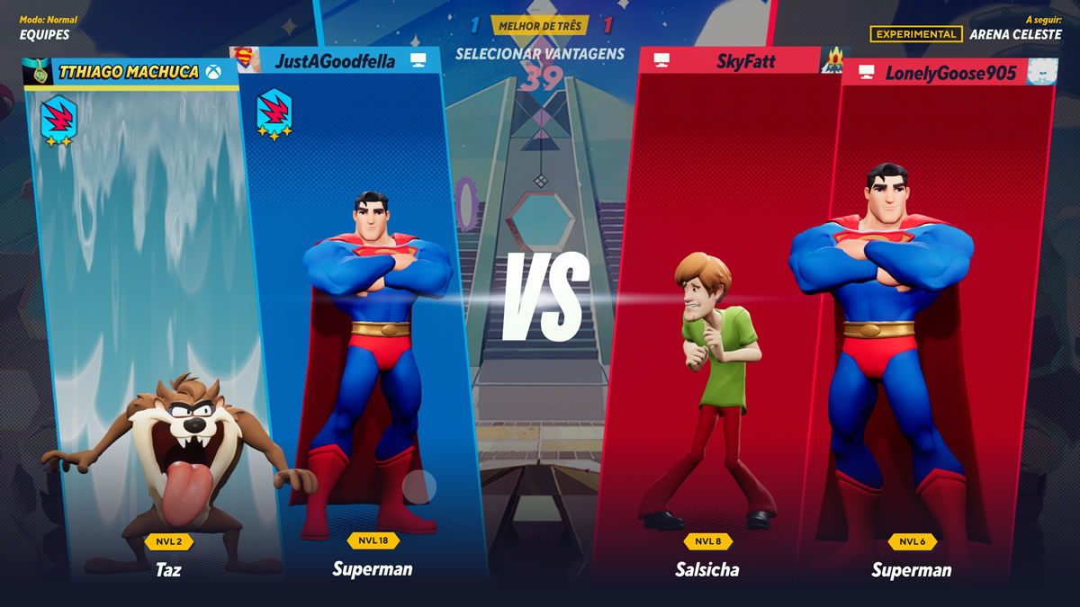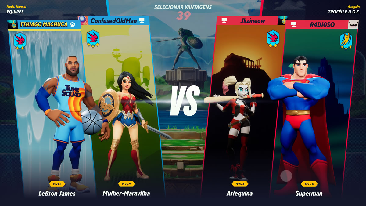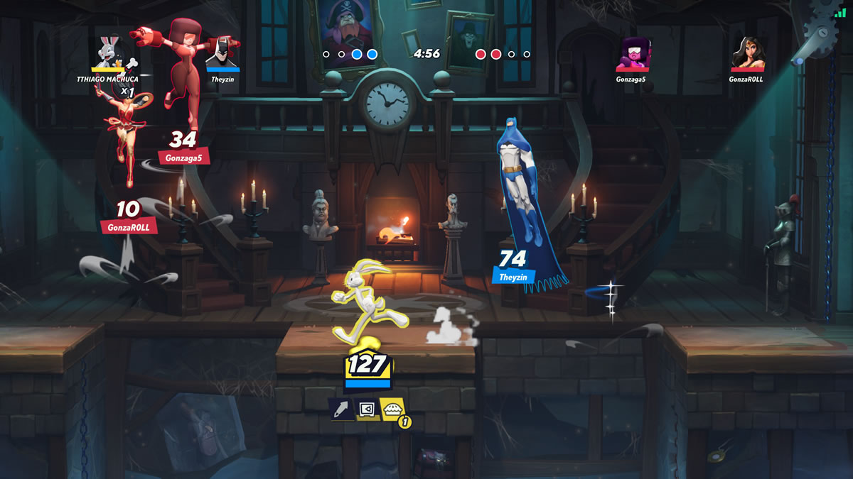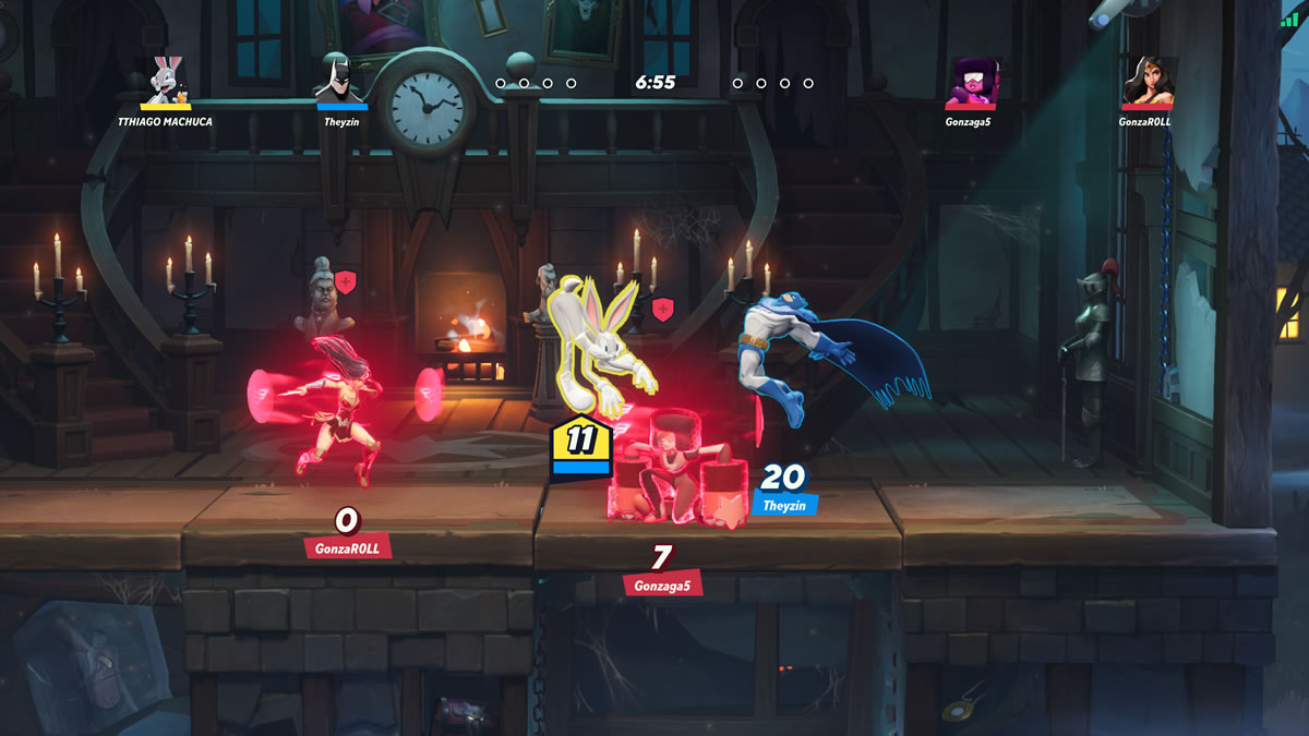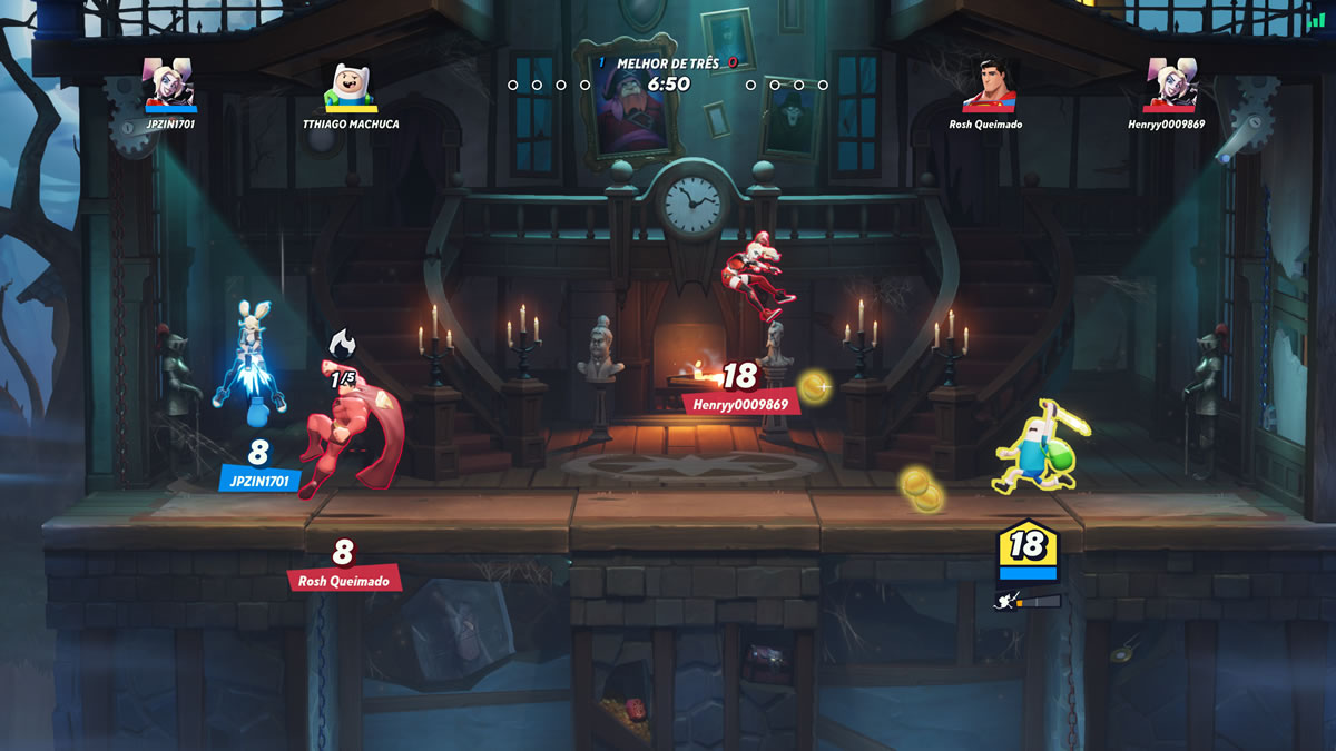 Significa que os lutadores de MultiVersus são gratuitos? Infelizmente não. O jogo irá apostar em um sistema de rotatividade a cada duas semanas (isso pode mudar eventualmente), oferecendo quatro personagens para serem utilizados gratuitamente. Brawlhalla, da Ubisoft, utiliza esse sistema. Porém os jogadores mais dedicados poderão juntar moedas douradas para comprar seus próprios personagens, destravando-os para sempre.
