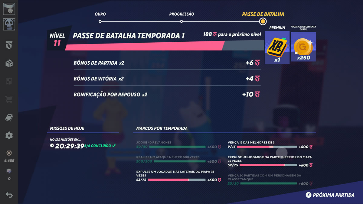 Discutir valores nesse momento parece complicado, pois são coisas que ainda podem ser reajustadas, para cima ou para baixo, quando o lançamento oficial acontecer. Mas para colocar alguns parâmetros, atualmente os personagens custam cerca de 2.000 a 3.000 moedas. A primeira vitória por dia rende 100 moedas, e outras partidas em sequência vão dando em torno de 50 moedas em média. Pode ser mais, pode ser menos. É possível comprar dois ou três personagens rapidamente então, e assim somar aos quatro que estão na atual rotatividade. Destravar todos os 17 personagens atuais, diria que levaria alguns meses (na minha velocidade, outros podem ter ritmos diferentes).