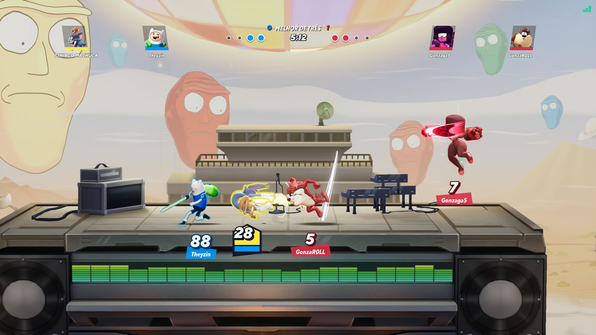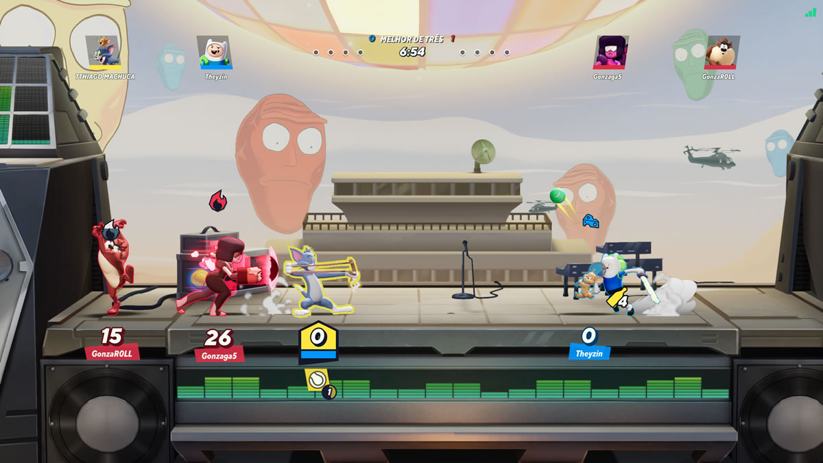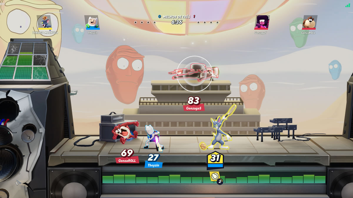 Na parte sonora, Multiversus também manda bem. Há trilhas sonoras dos personagens que estão presente, como a música de Steven Universo em sua própria arena, enquanto que todos os personagens tem falas dentro do jogo, e o título já conta com uma completa localização em português, com os dubladores originais de cada um dos personagens. Isso potencializa em muito a acessibilidade do título em jogadores mais novos, por exemplo. Ter seu personagem favorito ali, vibrando com uma vitória, desdenhando de um personagem ou até mesmo gritando (no caso do Tom, ele dá seu famoso grito quando sai da arena) é impagável.