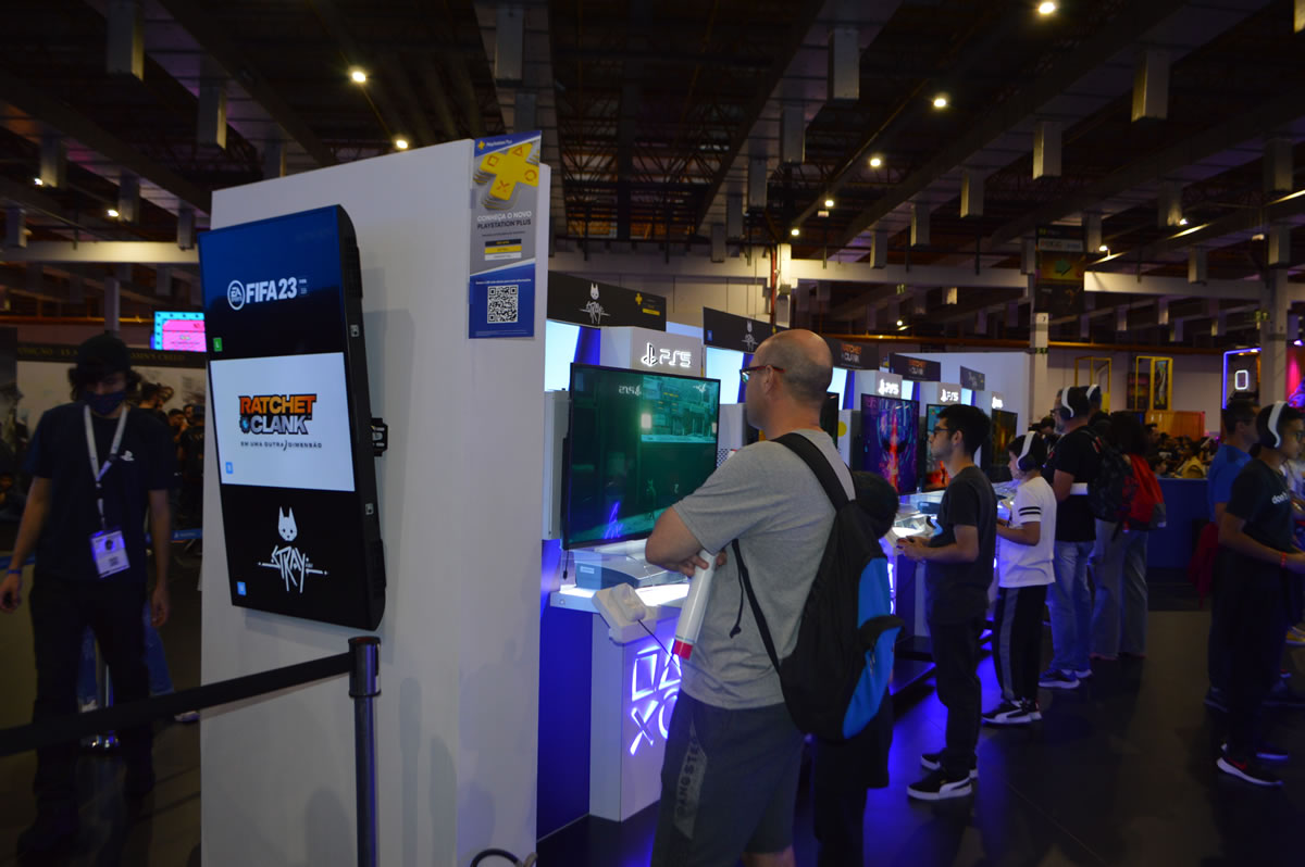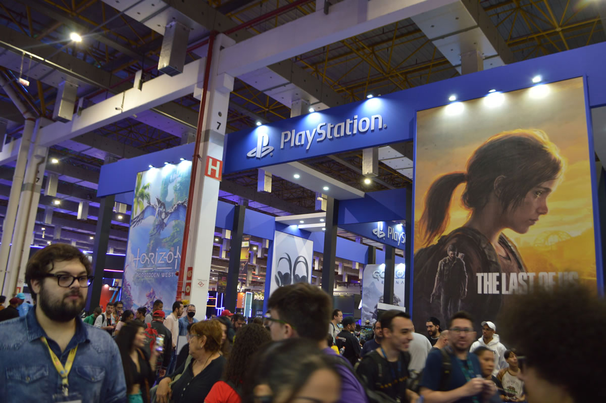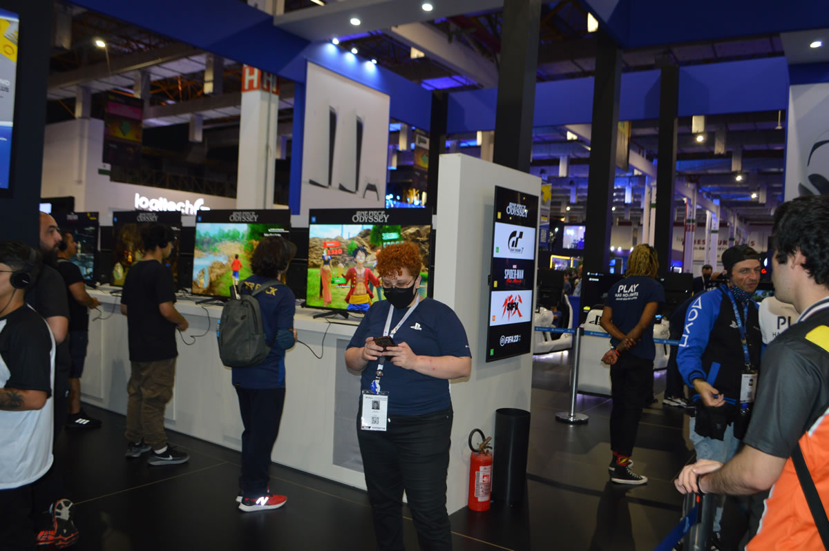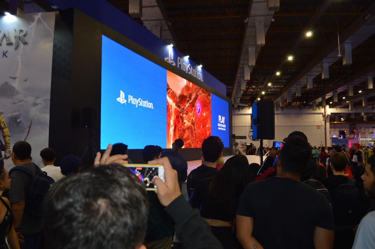 Enquanto isso, no estande do PlayStation, além das dezenas de estações de jogos, sei que vários influenciadores se apresentaram e passaram por lá em todos os dias da feira. Na segunda em questão, vi uma galera empolgada com um quiz que estava rolando no telão central (apenas não reparei se estava tendo premiações). Mas tinha uma muvuca bonita de pessoas participando e respondendo as perguntas feitas por um apresentador.