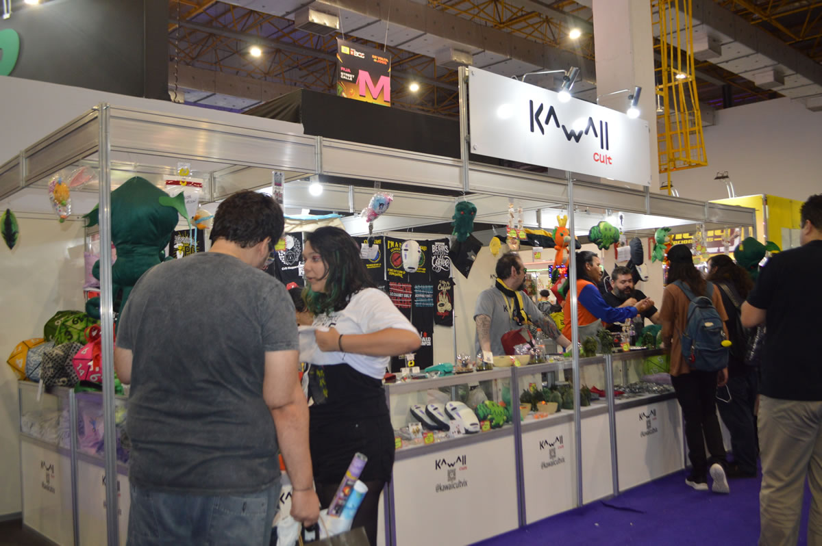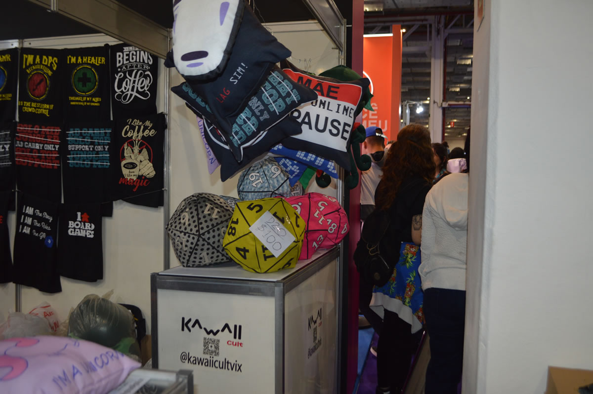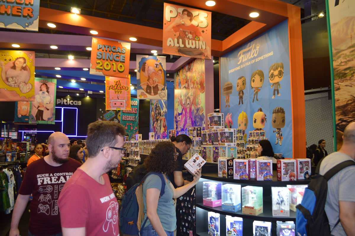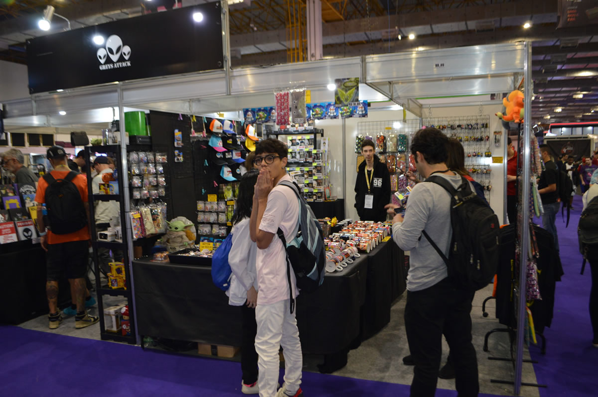 Separado dos estandes de jogos e atividades interativas, estava a área de lojinhas, menores que os estandes maiores de varejistas, vendendo dos mais diversos produtos – canecas, travesseiros, action figures, toucas, camisas, Funko Pop etc – ao público mais interessado em levar um item decorativo para casa do que ficar em filas para jogar ou participar de alguma interação. Admito que passei um bom tempo explorando estas lojinhas, pois havia intenções de encontrar algo de interessante que não poderia encontrar em minha pequena cidade no interior de São Paulo.